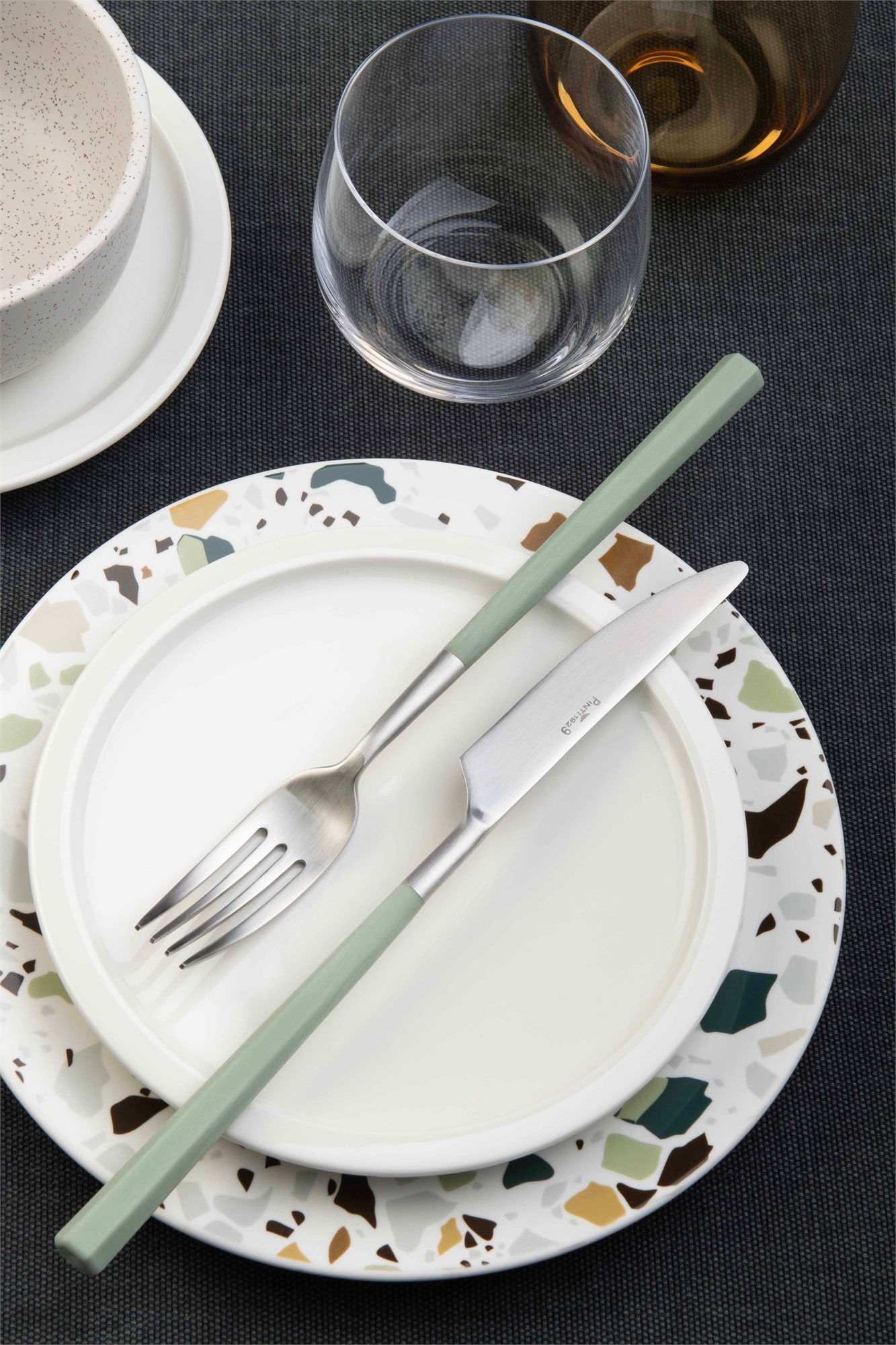 Изысканность, высочайшее качество материалов и шелковисто-матовые поверхности нержавеющей кованой стали в сочетании с шестигранной формой ручки из синего ABS-пластика делают этот продукт уникальным. Серия Hive особенно подходит для классической и современной сервировки. Она представлена в виде набора из 16 предметов: 4 вилки 21 см - 4 ложки 21 см - 4 ножа 23 см - 4 чайные/кофейные ложки 16 см. Он изготовлен из высококачественной нержавеющей стали 18/10.