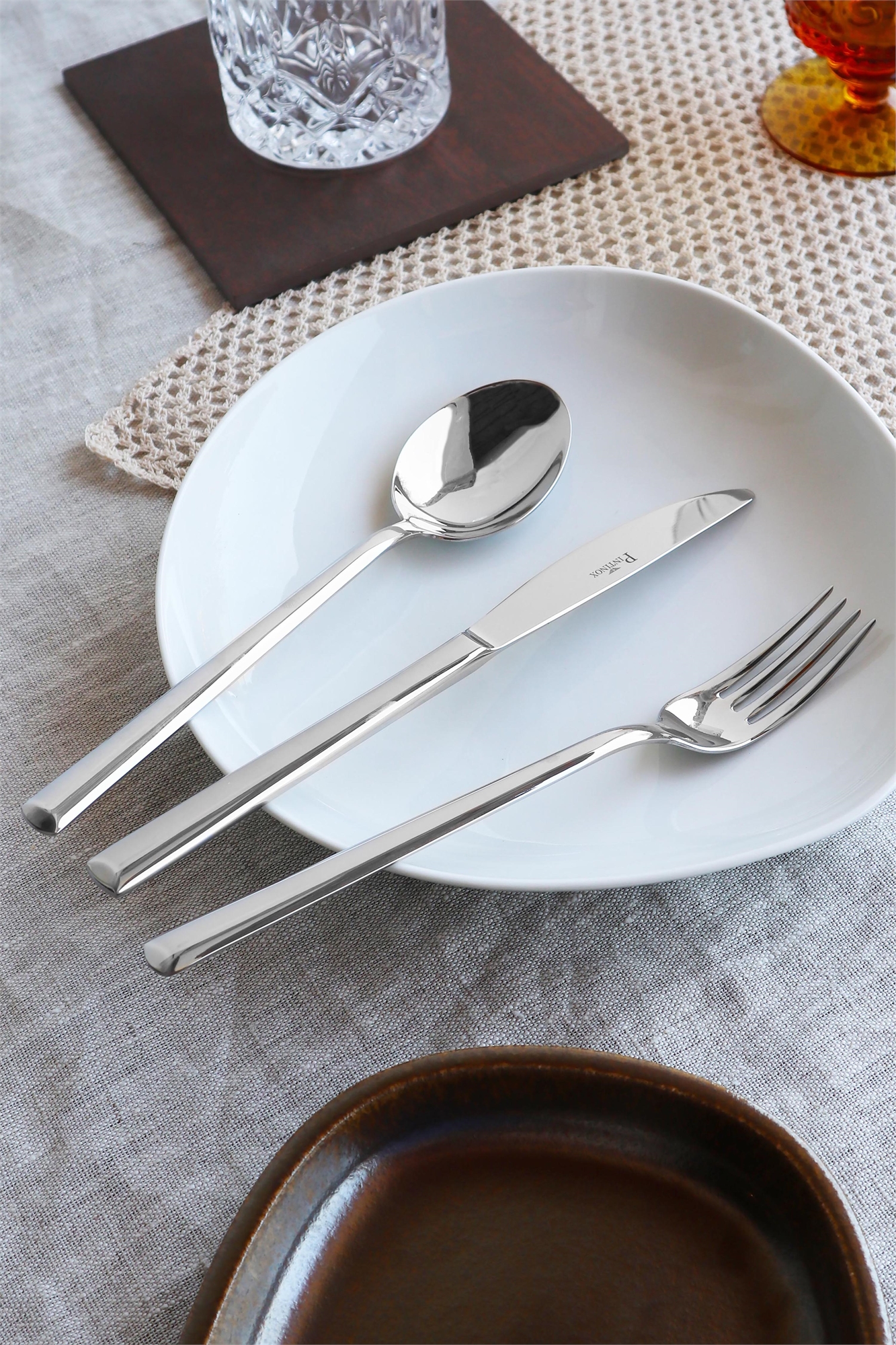 Synthesis - это изящный, линейный набор столовых приборов. Разработанный для обеспечения идеального баланса и полного удовлетворения как в руке, так и в использовании, без каких-либо неудобных краев, набор столовых приборов Synthesis идеально подходит для современного стола благодаря своему чистому и минималистичному дизайну, толщиной 3 мм и поставляется в наборе из 16 предметов: 4 вилки 21 см - 4 ложки 21 см - 4 ножа 22,5 см - 4 чайные/кофейные ложки 14,8 см. Изготовлен из высококачественной нержавеющей стали 18/10.