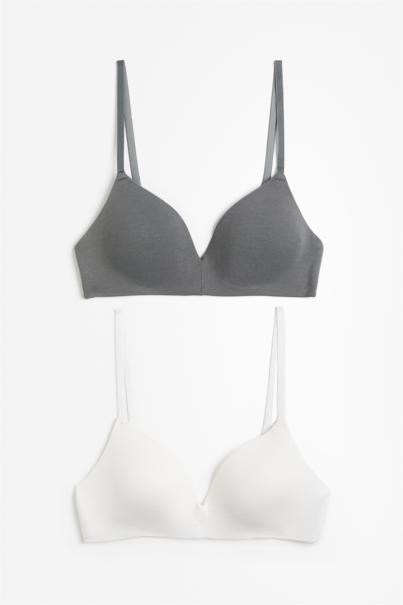 Мягкие бюстгальтеры без косточек из хлопкового джерси с регулируемыми бретелями и мягкими чашечками, придающими форму бюсту и обеспечивающими хорошую поддержку. Застежка на крючки и глазки сзади.