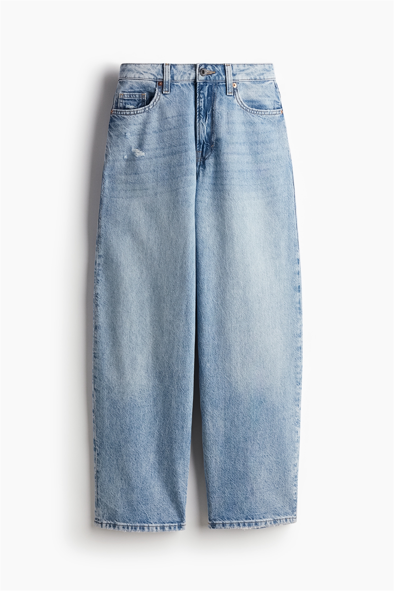 Джинсы с 5 карманами из жесткого хлопкового денима, который сначала кажется твердым, но затем смягчается и ослабевает при носке. Прямые штанины со свободной посадкой от талии до бедра и мешковатой посадкой от бедра до подола. Высокая талия с ширинкой на молнии и пуговице. Удлиненная длина, созданная для того, чтобы ниспадать по ноге с эффектом укладки. Непринужденный и прохладный джинсовый образ.