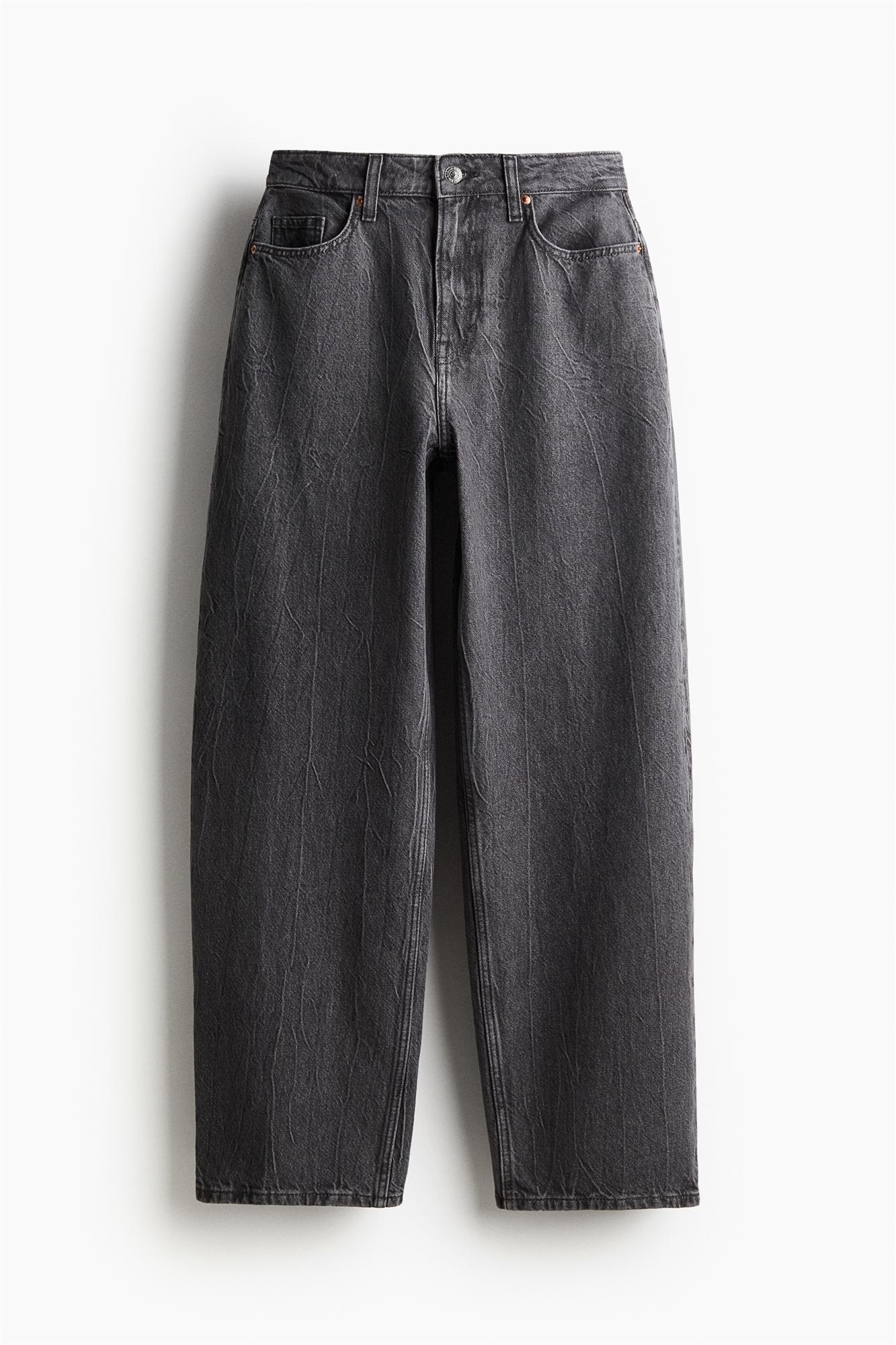 Джинсы с 5 карманами из жесткого хлопкового денима, который сначала кажется твердым, но затем смягчается и ослабевает при носке. Прямые штанины со свободной посадкой от талии до бедра и мешковатой посадкой от бедра до подола. Высокая талия с ширинкой на молнии и пуговице. Удлиненная длина, созданная для того, чтобы ниспадать по ноге с эффектом укладки. Непринужденный и прохладный джинсовый образ.