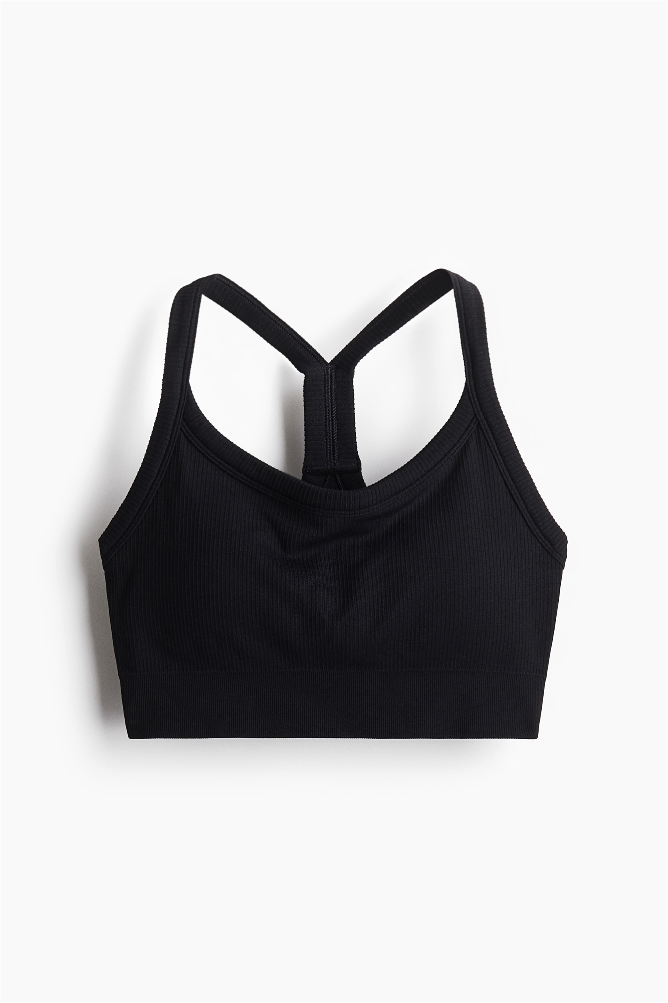 Спортивный бюстгальтер из ребристой функциональной ткани с добавлением DryMove™, которая отводит влагу от кожи, обеспечивая комфортную сухость во время движения. Тонкие бретели, спина в стиле "рейсер" и чашечки на подкладке со съемными вкладышами для регулировки посадки и придания формы бюсту. Эластичная тесьма по подолу. Средняя поддержка, подходящая для тренировок умеренной интенсивности. Бюстгальтер сконструирован с минимальным количеством швов для более комфортной посадки и повышенной подвижности.