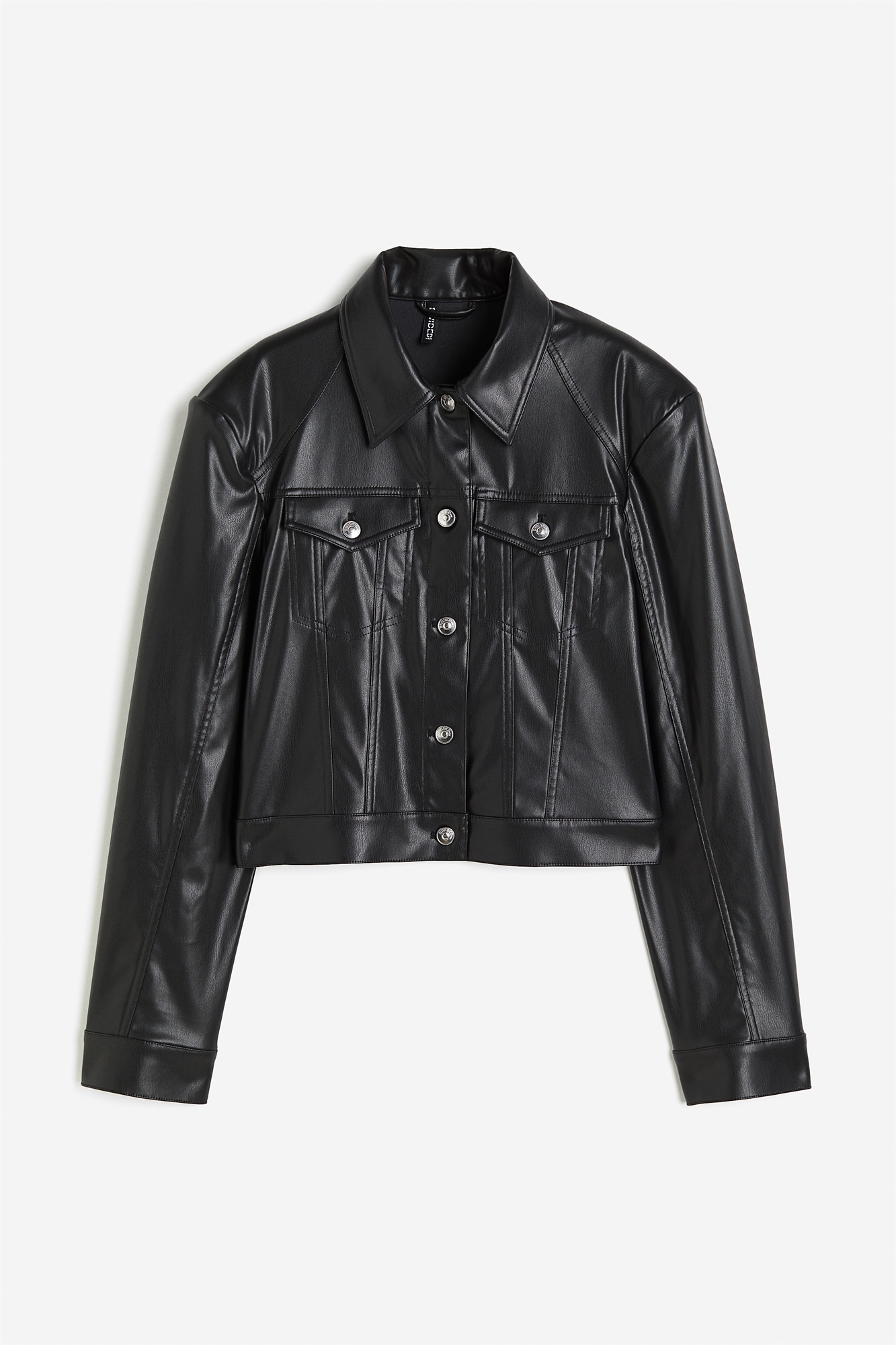 Короткий жакет из ткани с покрытием, с видимыми швами спереди и сзади и подплечниками, которые создают смелый силуэт. Воротник, пуговицы спереди, накладные нагрудные карманы с пуговицей и длинные рукава с манжетами на пуговицах. На подкладке.