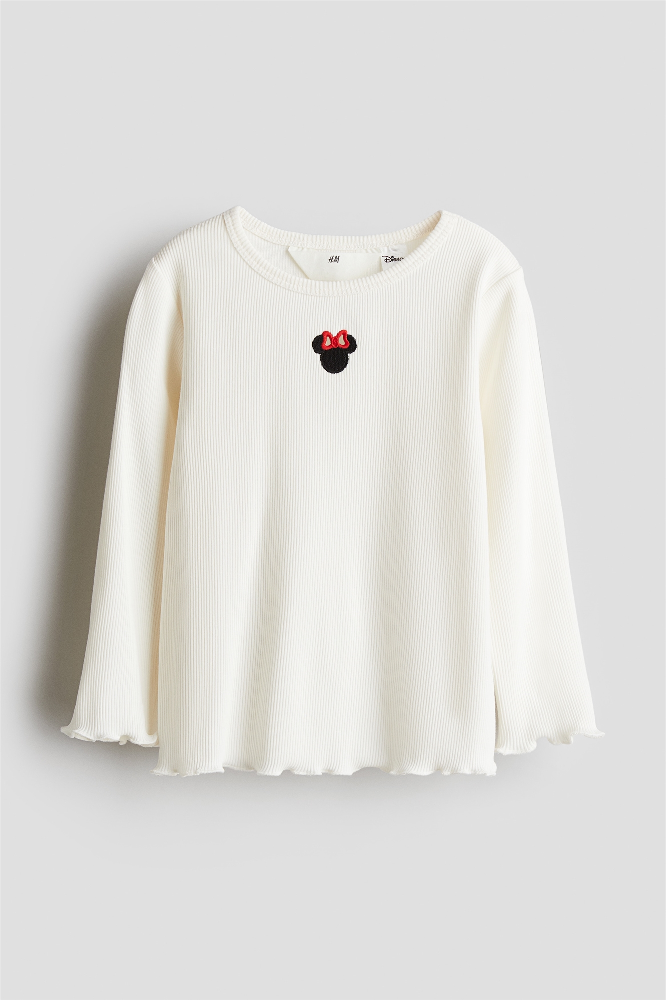 Топ из ребристого хлопкового джерси с принтом спереди. Круглый вырез, длинные рукава, манжеты и подол обработаны оверлоком.