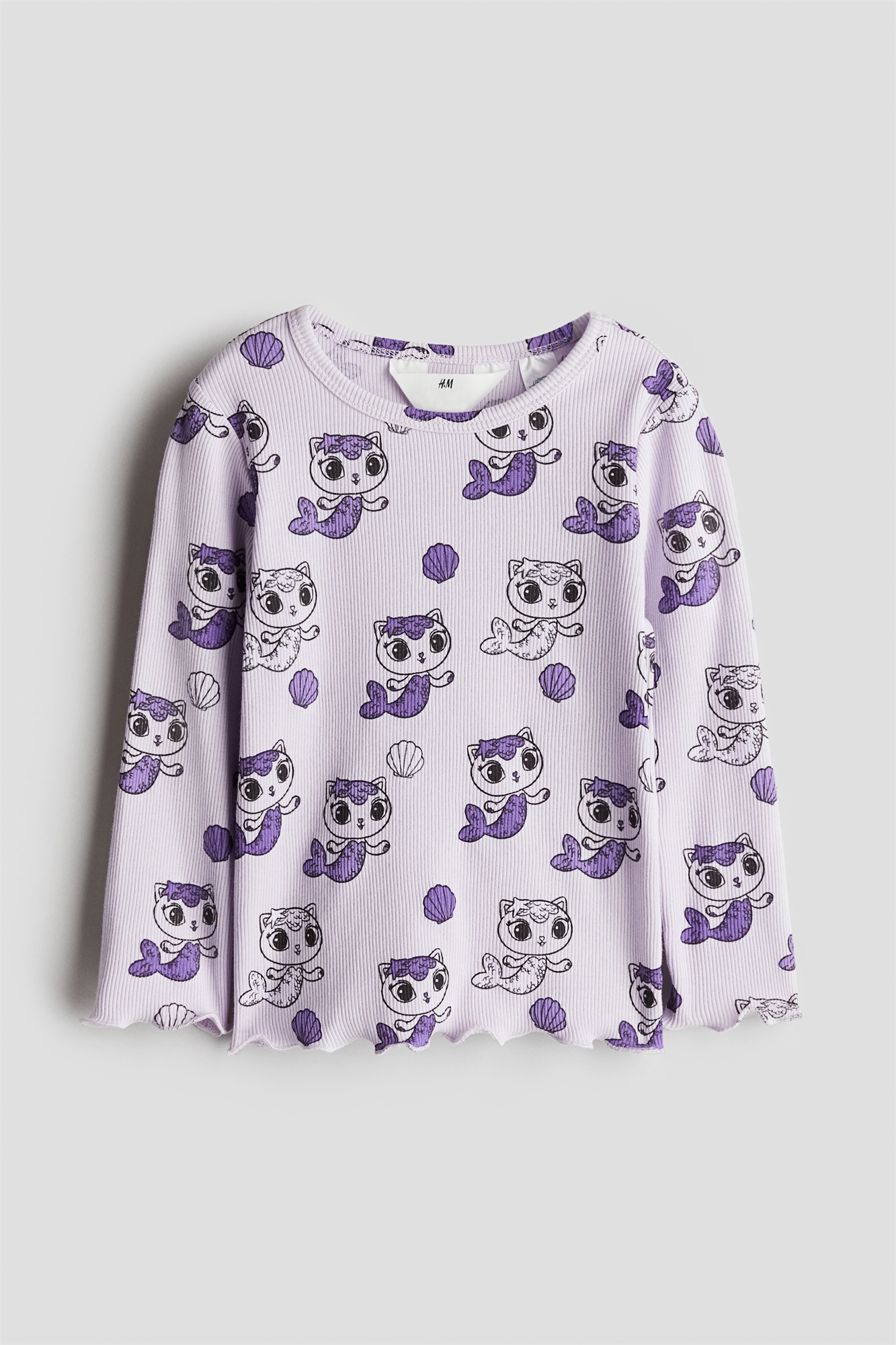 Топ из ребристого хлопкового джерси с принтом спереди. Круглый вырез, длинные рукава, манжеты и подол обработаны оверлоком.