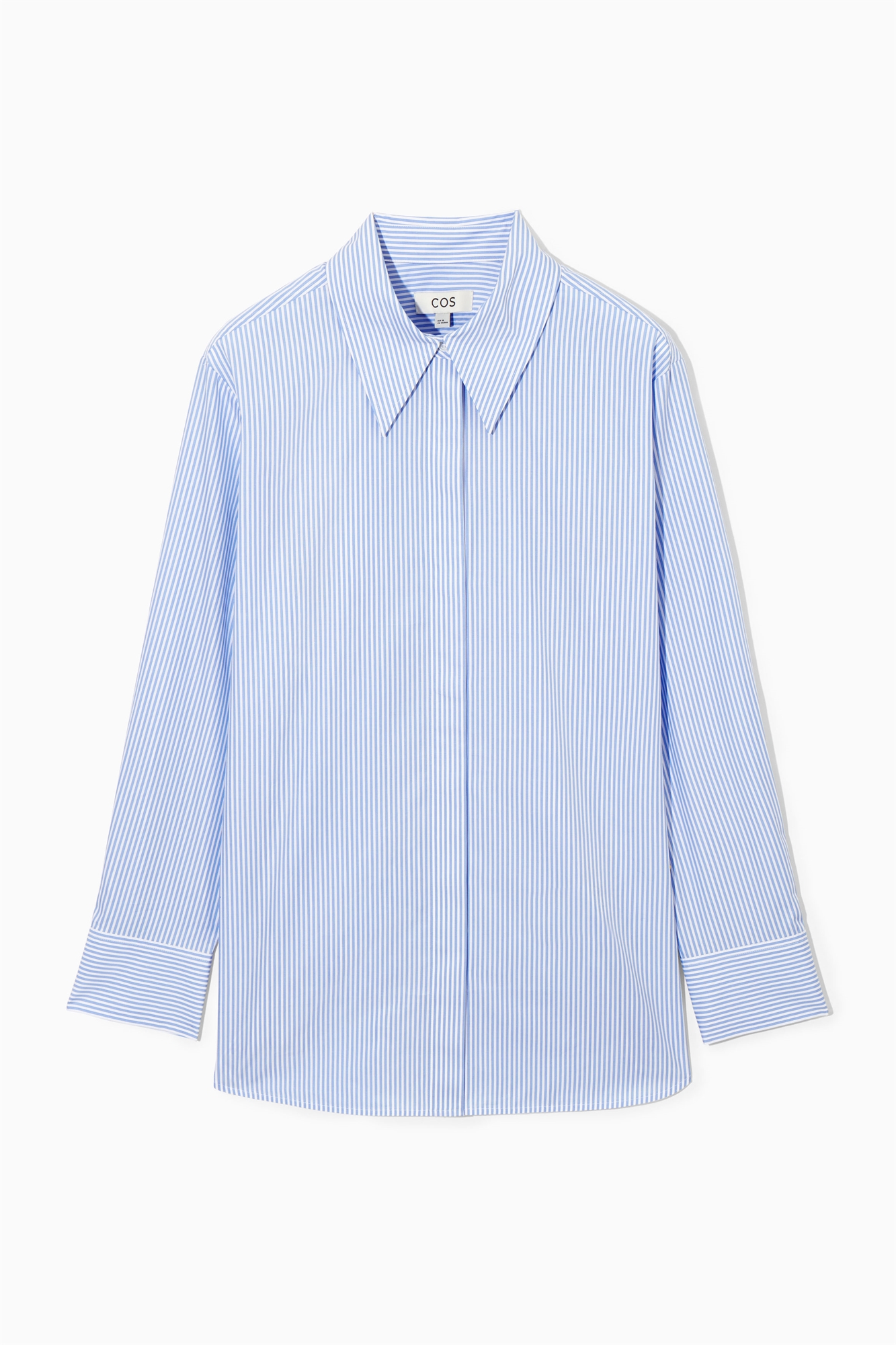 Носите ли вы его заправленным или свободным - возможности укладки непринужденной рубашки в полоску от COS безграничны. Она сшита из чистого хлопка-поплина, обладающего естественной воздухопроницаемостью, и имеет скрытую застежку для придания обтекаемости и двухслойный ярморочный край, придающий силуэту мягкую структуру. Удлиненный заостренный воротник, закругленный подол и манжеты на пуговицах добавляют последние штрихи. Свободный крой Застежка на пуговицы 100% хлопок / Машинная стирка Длина по спинке для размера EU 36 составляет 74 см / Модель носит размер EU 36