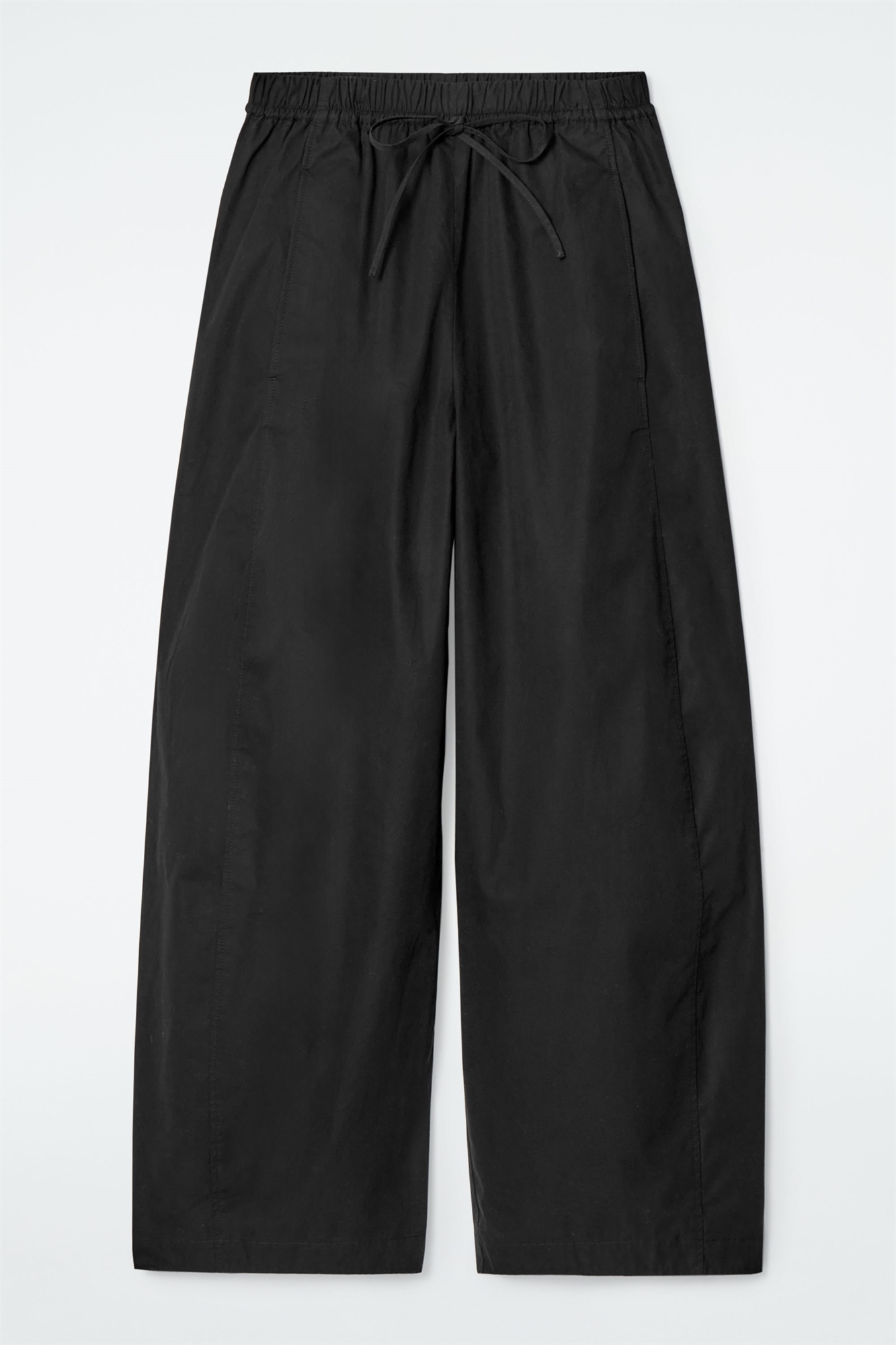 Эти непринужденные черные брюки сшиты из легкого хлопка и имеют смещенные центральные швы, тонко очерчивающие объемные бочкообразные ноги. К деталям дизайна относятся широкий эластичный пояс, тональные шнурки и косые боковые карманы. Свободный крой Оболочка: 100% хлопок. Без учета отделки / Машинная стирка Внутренняя длина ноги размера EU 36 составляет 65,6 см / Модель носит размер EU 36