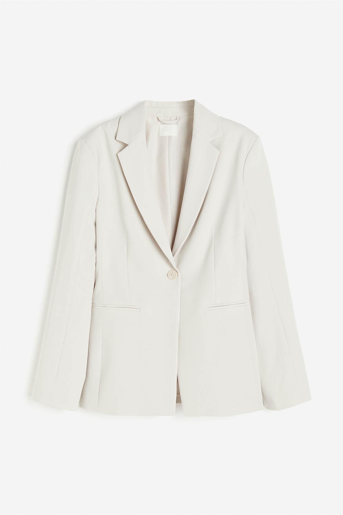 Однобортный блейзер из мягкой саржи с лацканами с вырезом и одной пуговицей спереди. Зауженная талия с формирующими вытачками спереди. Плечевые накладки, длинные рукава и втачные передние карманы. На подкладке.