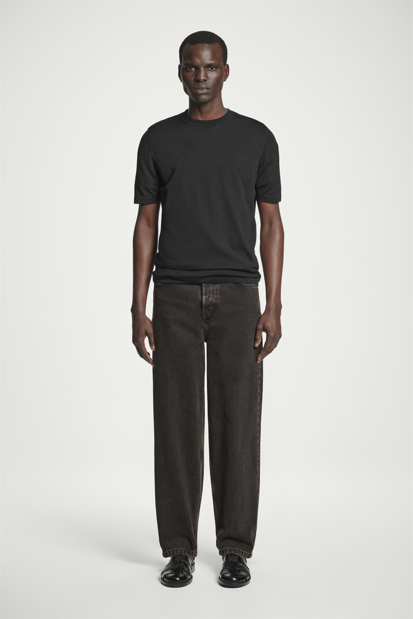 В этом сезоне наши эксперты по джинсовой ткани представили новый непринужденный, расслабленный крой. Джинсы Dome прямого кроя сшиты из 13 унций денима из смеси переработанного и органического хлопка, выстиранного до классического черного оттенка. Носите их с подходящей рубашкой или пиджаком. Прямые ноги, свободный крой, средняя посадка, длина до щиколотки 13 унций, застежка на пуговицах, пять карманов Из-за используемой техники окрашивания цвет может варьироваться Органический хлопок выращен из негенетически модифицированных семян без использования химических удобрений и пестицидов Состав: 80% органический хлопок, 20% переработанный хлопок. Без учета отделки / Очистка от пятен Внутренняя длина штанины размера 32 составляет 72,5 см / Модель носит размер 32