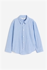 Рубашка из хлопкового полотна с отложным воротником, застежкой на пуговицы спереди, передом и длинными рукавами с манжетами на пуговицах. Закругленный подол.