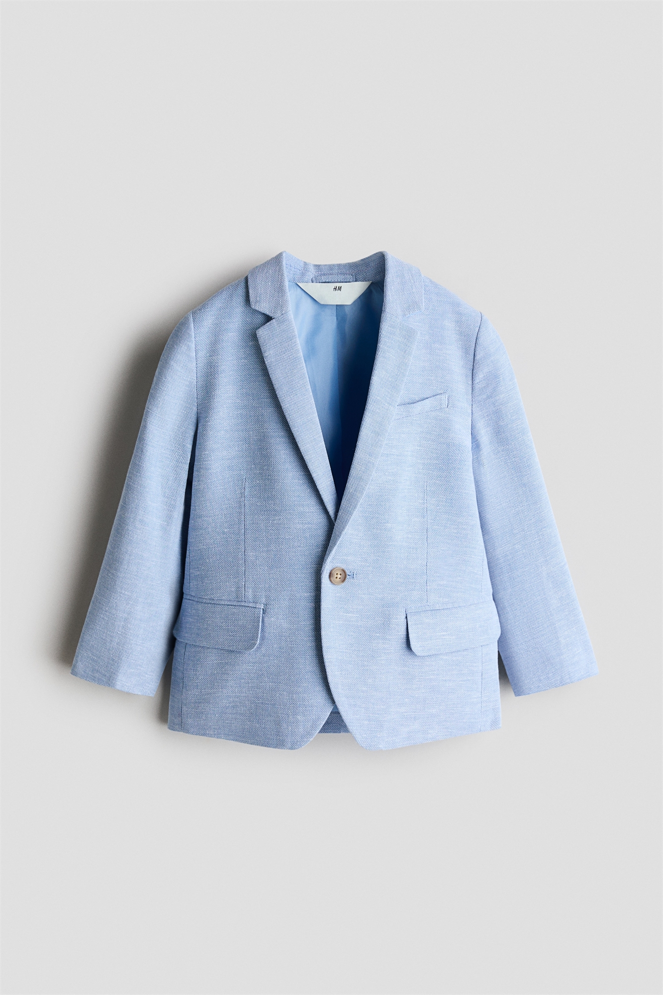 Пиджак из тканого материала из смеси хлопка и льна с лацканами с вырезом и застежкой на пуговицу спереди. Нагрудный карман, накладные карманы спереди, декоративные пуговицы на манжетах и один задний клапан. На подкладке.