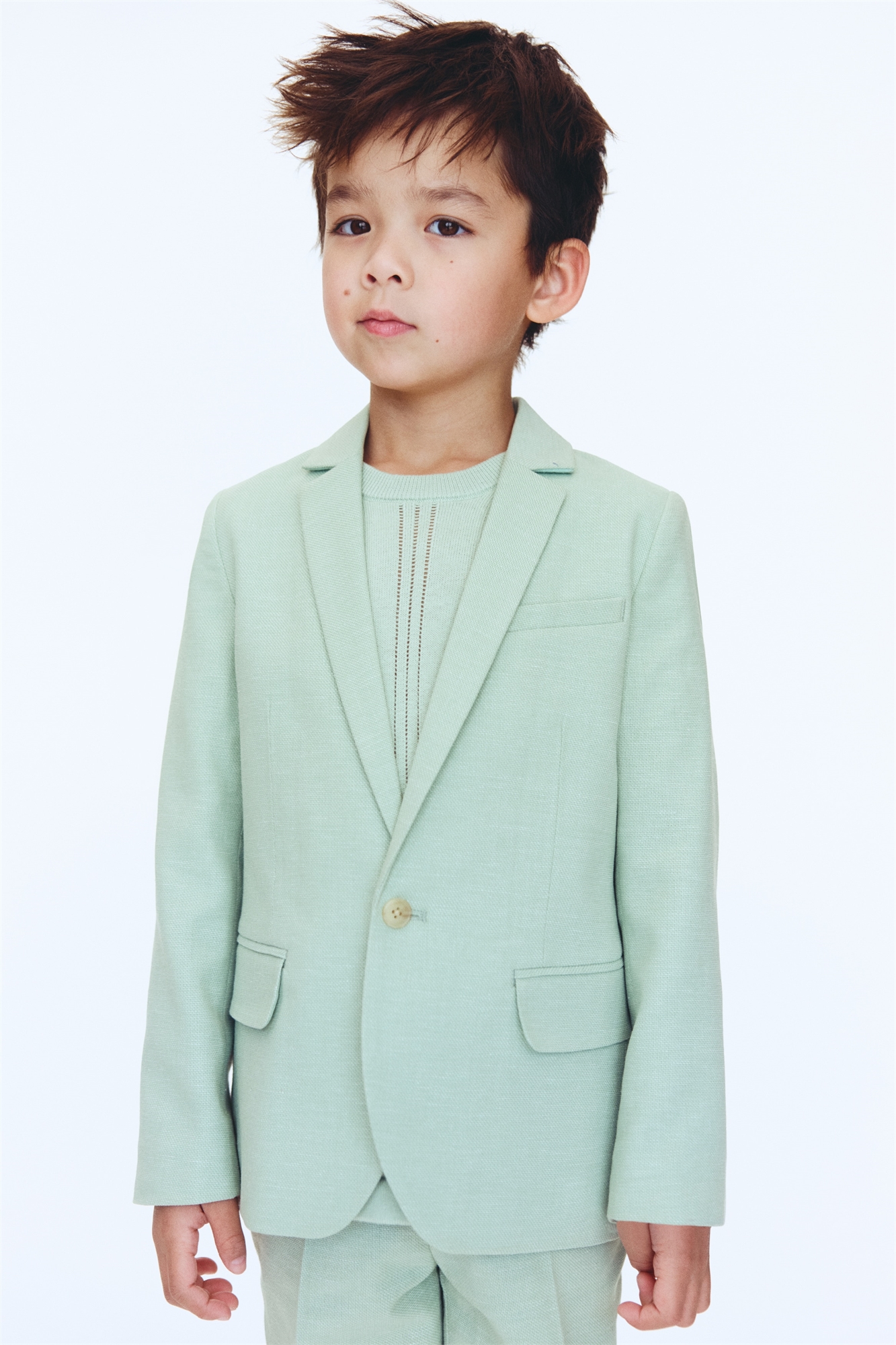 Пиджак из тканого материала из смеси хлопка и льна с лацканами с вырезом и застежкой на пуговицу спереди. Нагрудный карман, накладные карманы спереди, декоративные пуговицы на манжетах и один задний клапан. На подкладке.