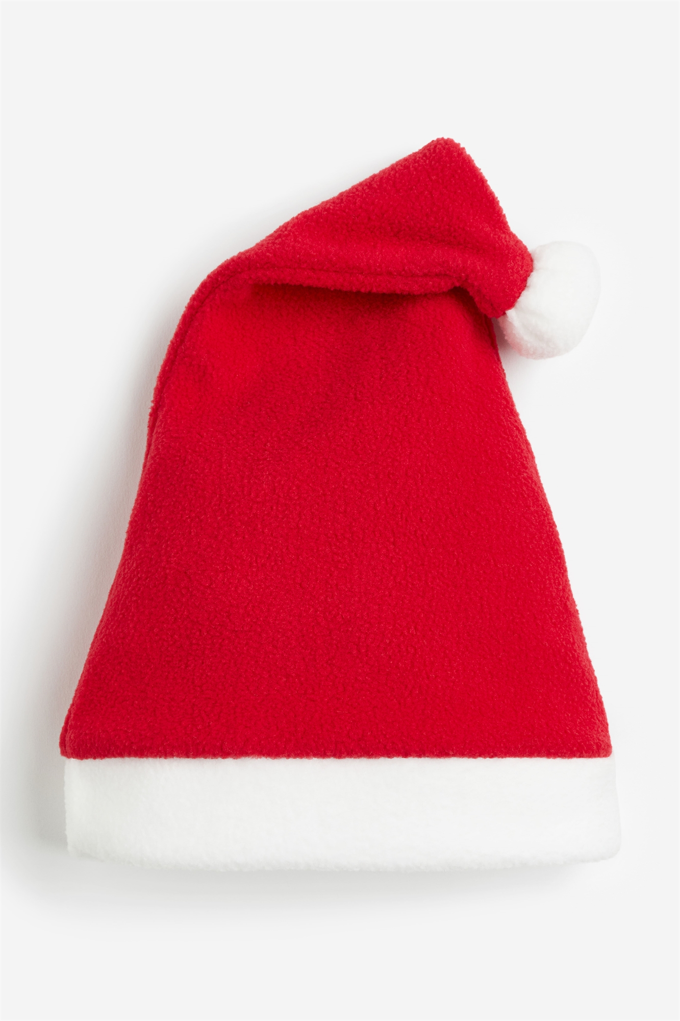 Шапка Санты из мягкого флиса с пушистым помпоном на макушке и контрастной цветной отделкой по подолу.