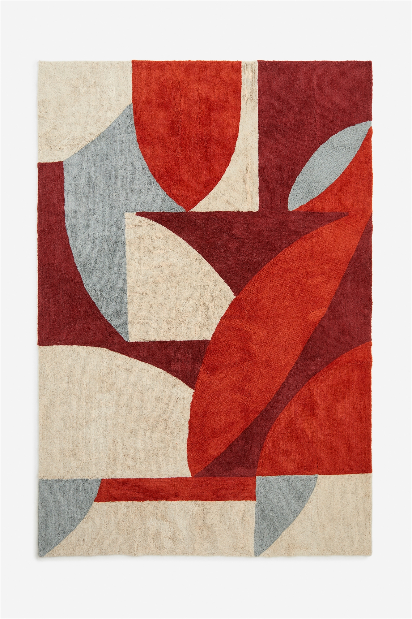 Большой ковер из шерсти и хлопка с коротким ворсом и вывязанным узором на лицевой стороне, который добавит веселый, красочный штрих в ваш дом.