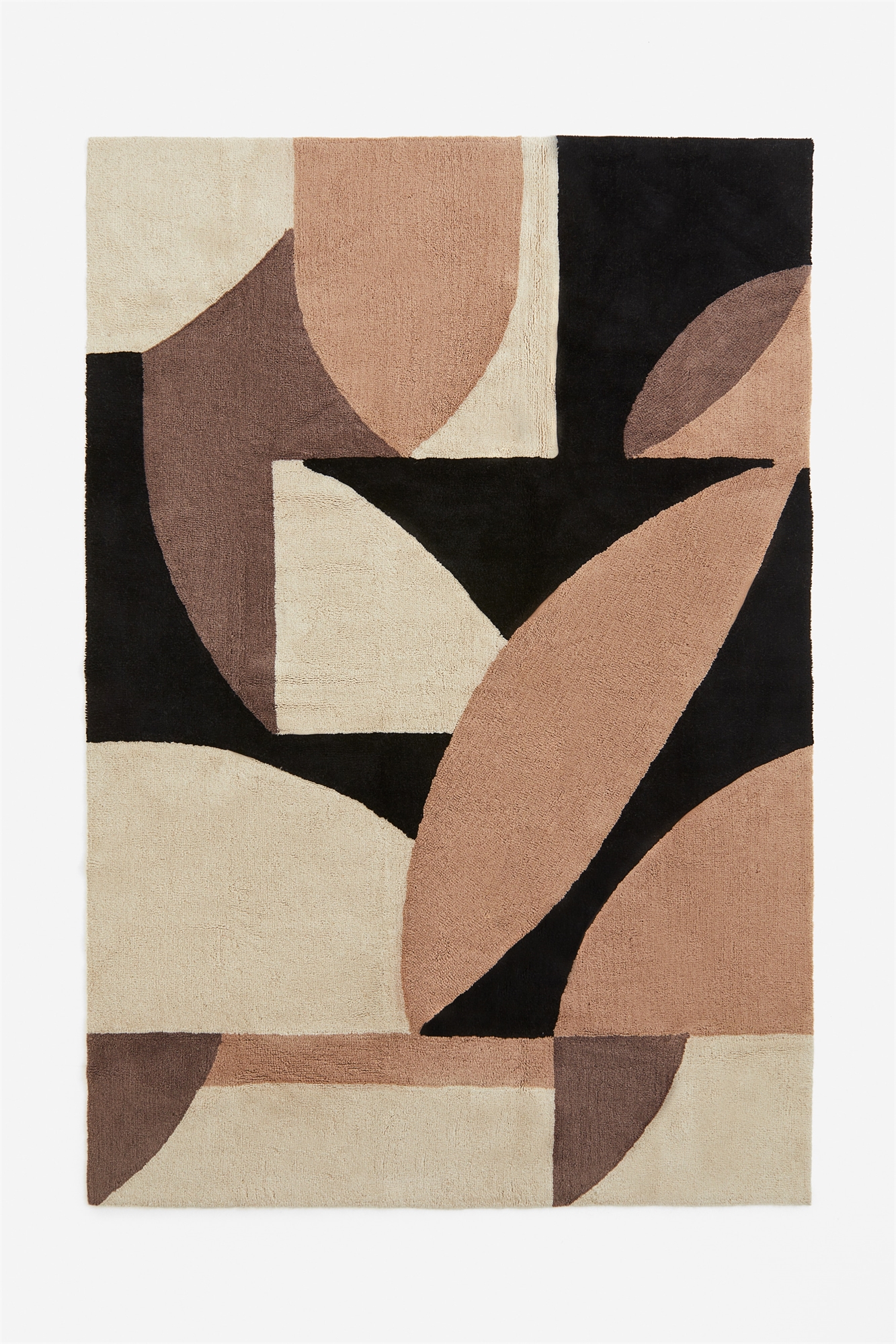 Большой ковер из шерсти и хлопка с коротким ворсом и вывязанным узором на лицевой стороне, который добавит веселый, красочный штрих в ваш дом.