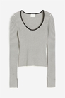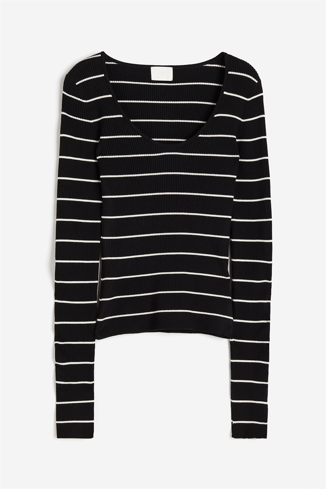 Облегающий топ из мягкого трикотажа в рубчик с глубоким круглым вырезом и длинными рукавами с разрезом на манжетах.
