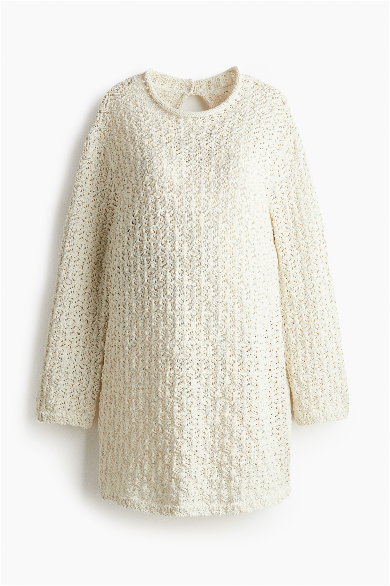 Слегка удлиненный приталенный джемпер из мягкого фактурного трикотажа с круглым вырезом, спущенными плечами и длинными рукавами. Окантовка по вырезу горловины, манжетам и подолу.