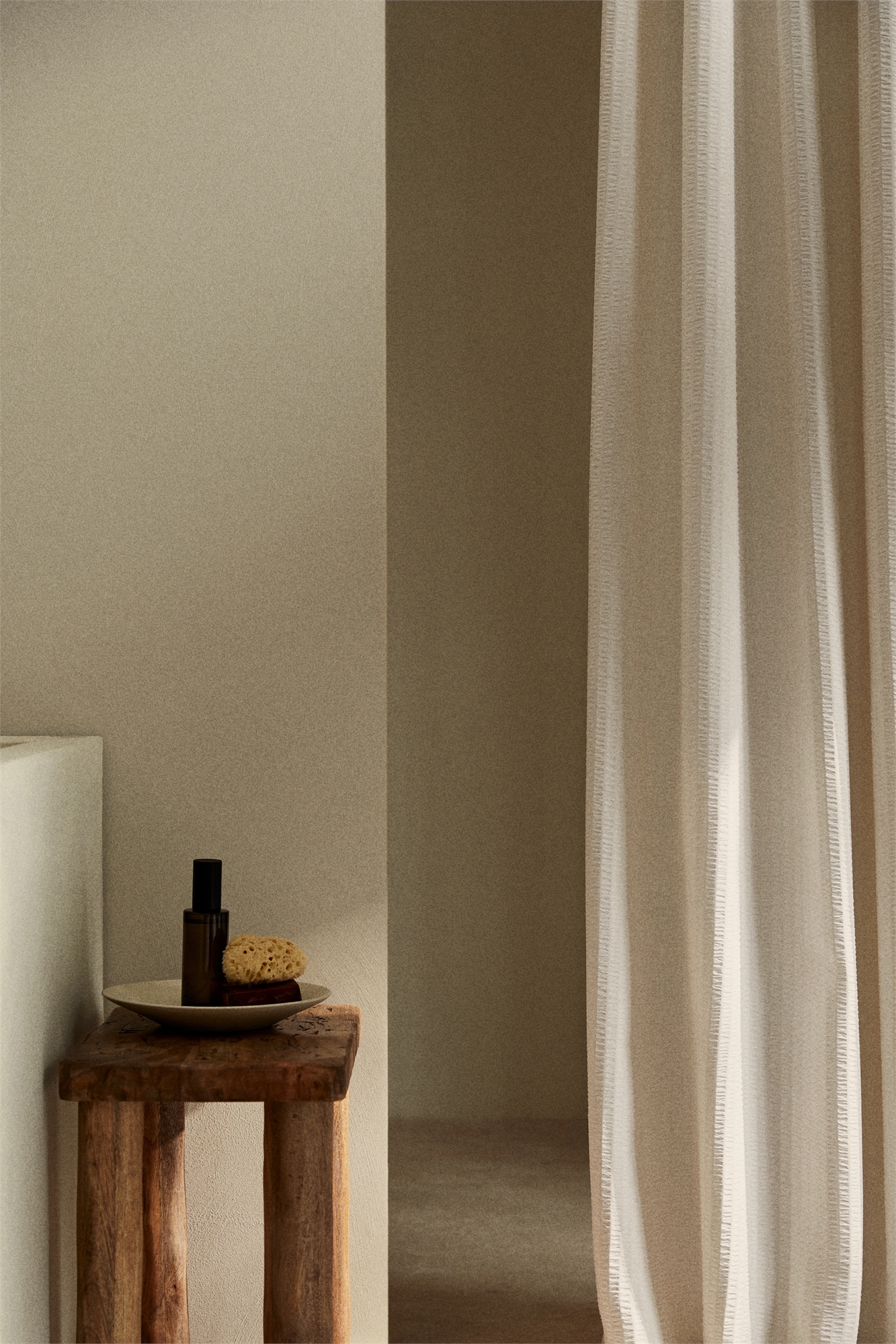 Занавеска для душа из водоотталкивающего полиэстера с металлическими люверсами в верхней части. Кольца для шторки продаются отдельно.