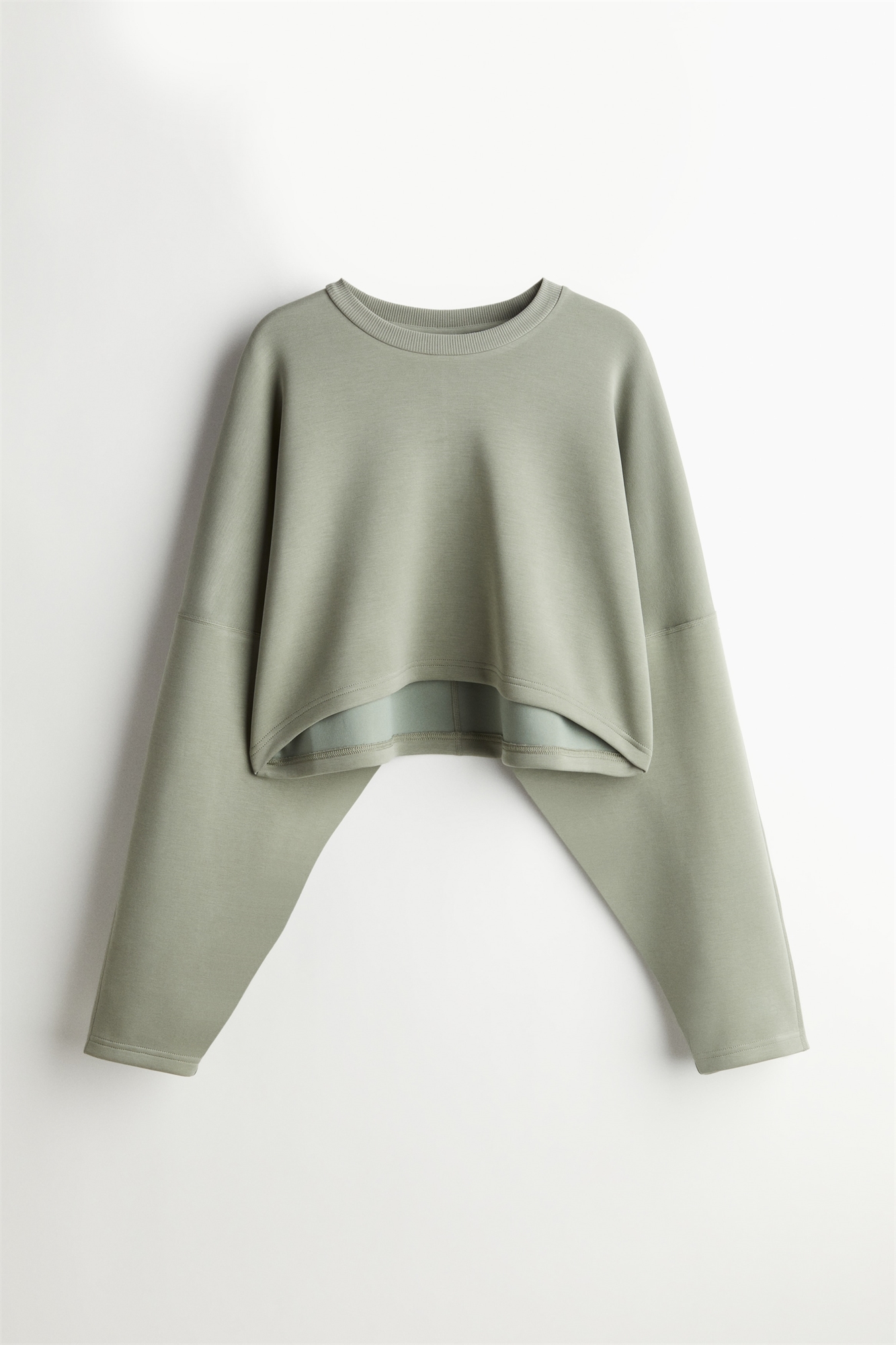 Облегающий спортивный топ из мягкой функциональной ткани DryMove™, которая отводит влагу от кожи, обеспечивая комфортную сухость во время движения. Свободный крой с круглым вырезом с ребристой отделкой и длинными рукавами "летучая мышь". Укороченные спереди.