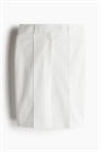 Приталенная юбка длиной до колена с фактурным переплетением из смеси льна. Пришитые складки и разрез спереди. Регулярная талия, ширинка на молнии, застежка на крючок и глазок, а также прорезной задний карман. На подкладке.