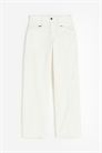 Брюки из хлопковой саржи с высокой талией, застежкой на молнию и пуговицу, передними карманами на молнии, открытыми задними карманами и накладным карманом на ноге. Прямые ноги со швом ниже колен.