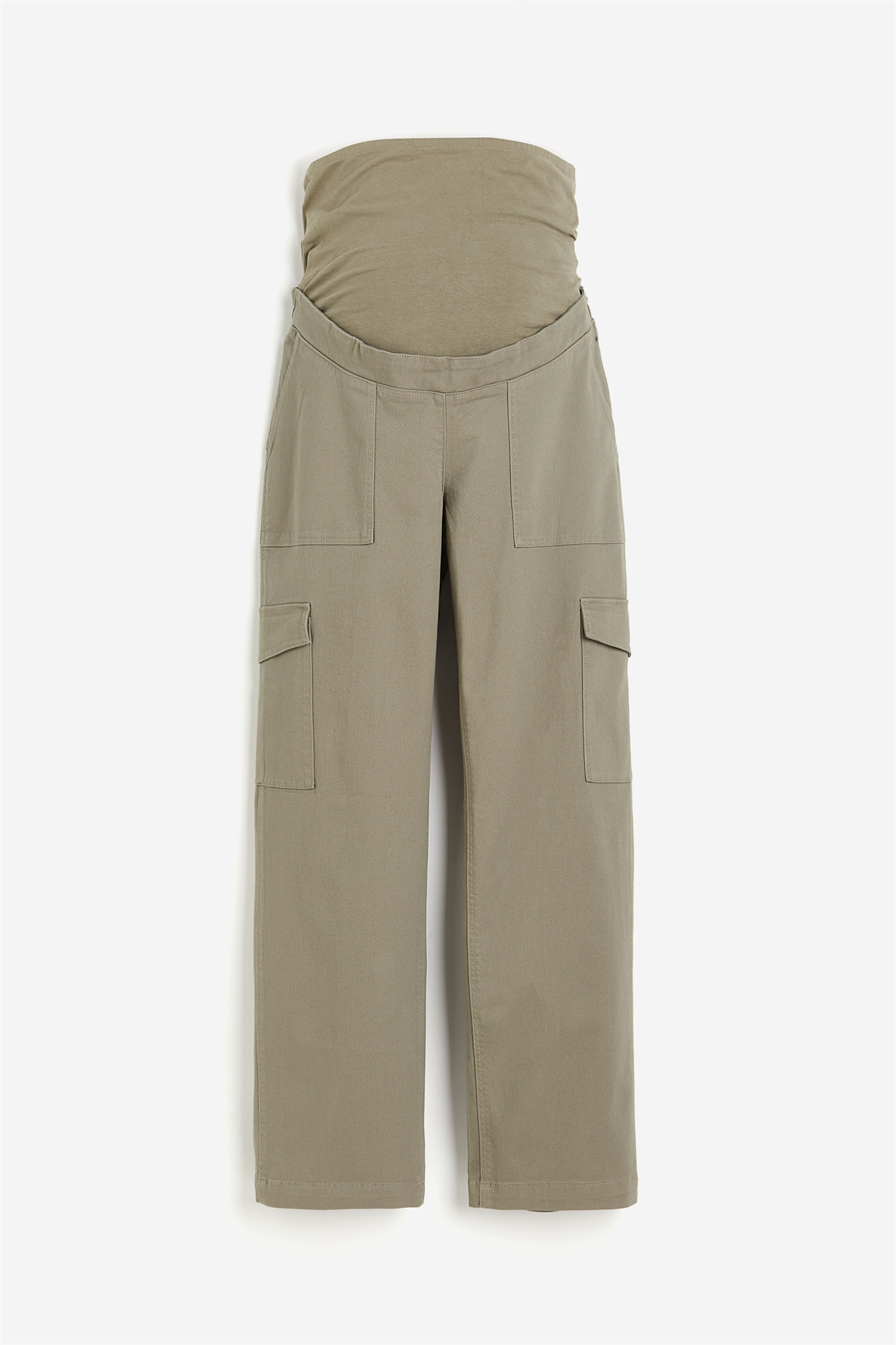 Брюки свободного кроя из хлопковой саржи с накладными передними карманами и прямыми ногами с отлетными карманами. Широкий пояс из джерси для лучшей посадки на животе.