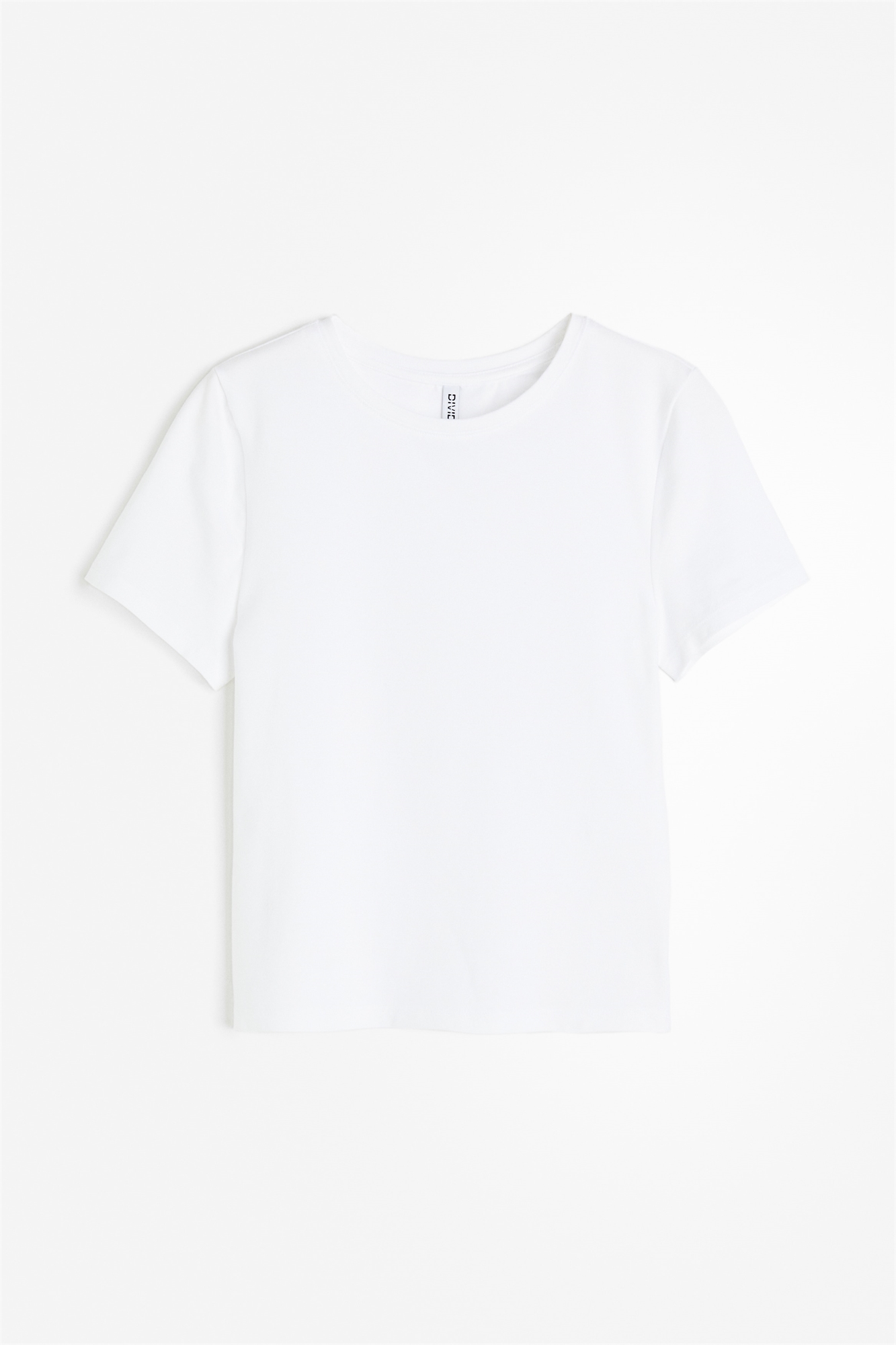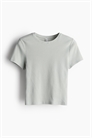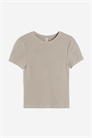 Короткая, облегающая фигуру футболка из мягкого джерси. Круглый вырез с узкой окантовкой и прямой подол.