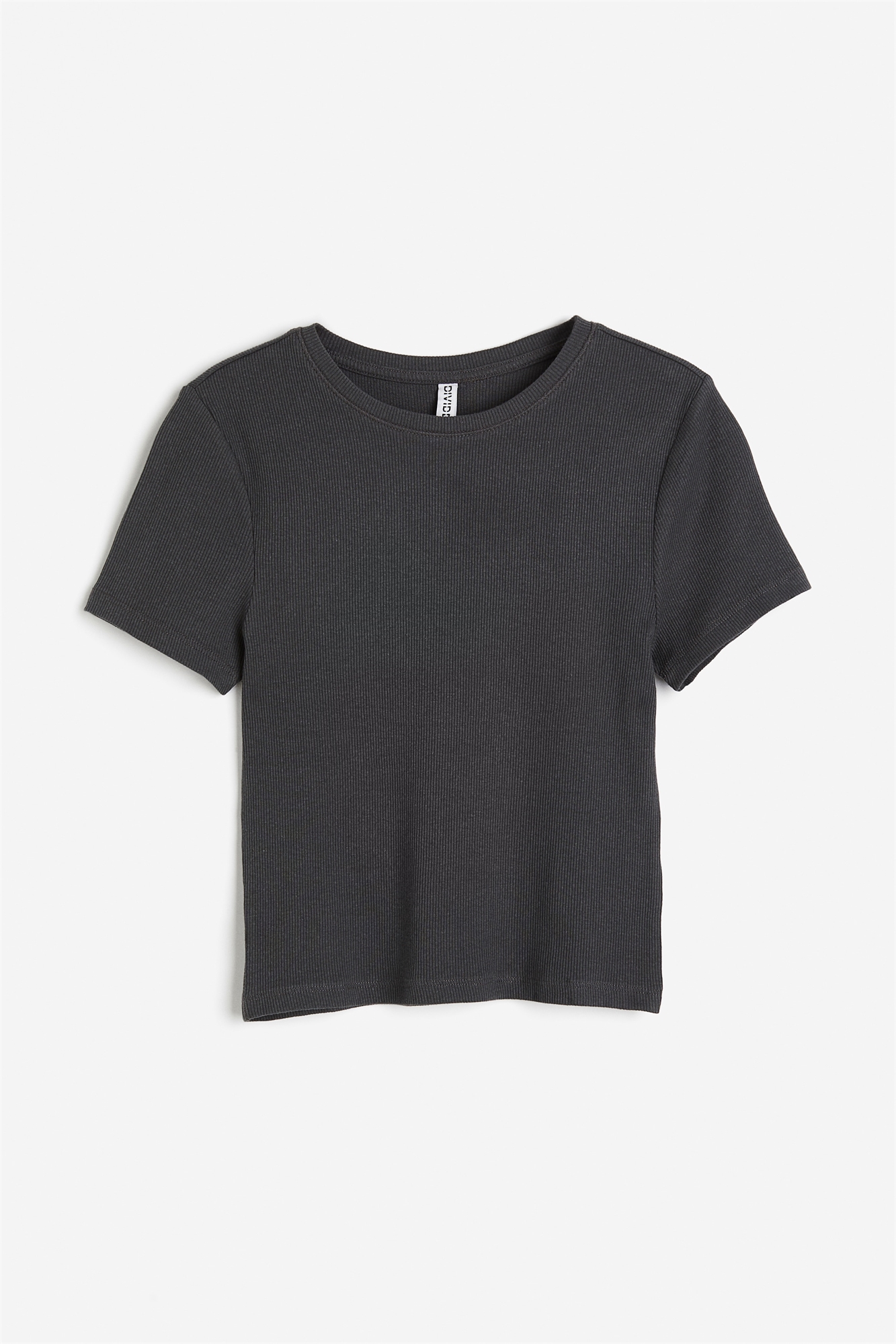 Короткая, облегающая фигуру футболка из мягкого джерси. Круглый вырез с узкой окантовкой и прямой подол.