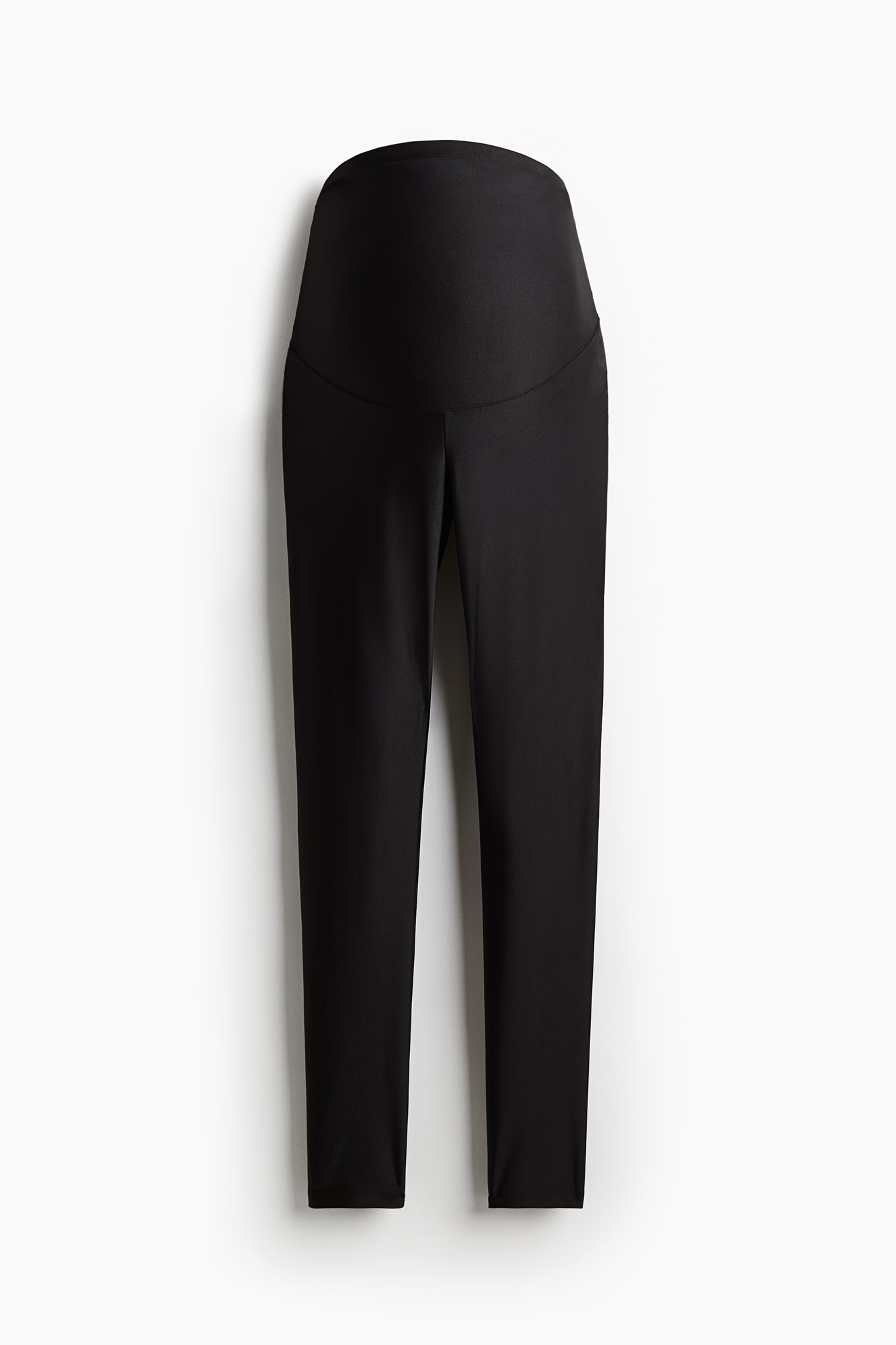 Леггинсы из блестящего трикотажа с широкой панелью на талии для лучшей посадки на животе.