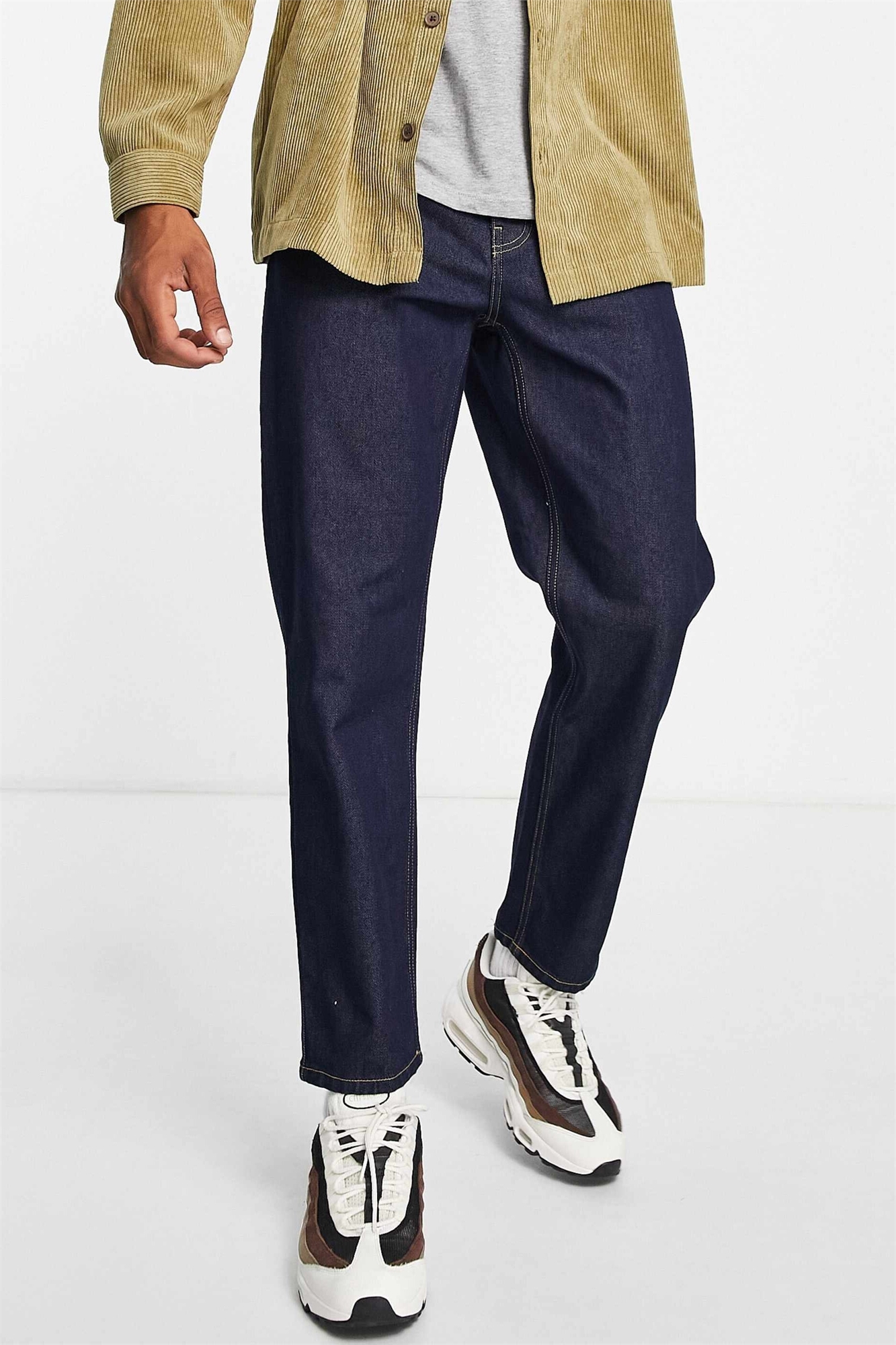 Джинсовая ткань без эластана: темно-синяя оттенок Основной состав: 100% хлопок.
