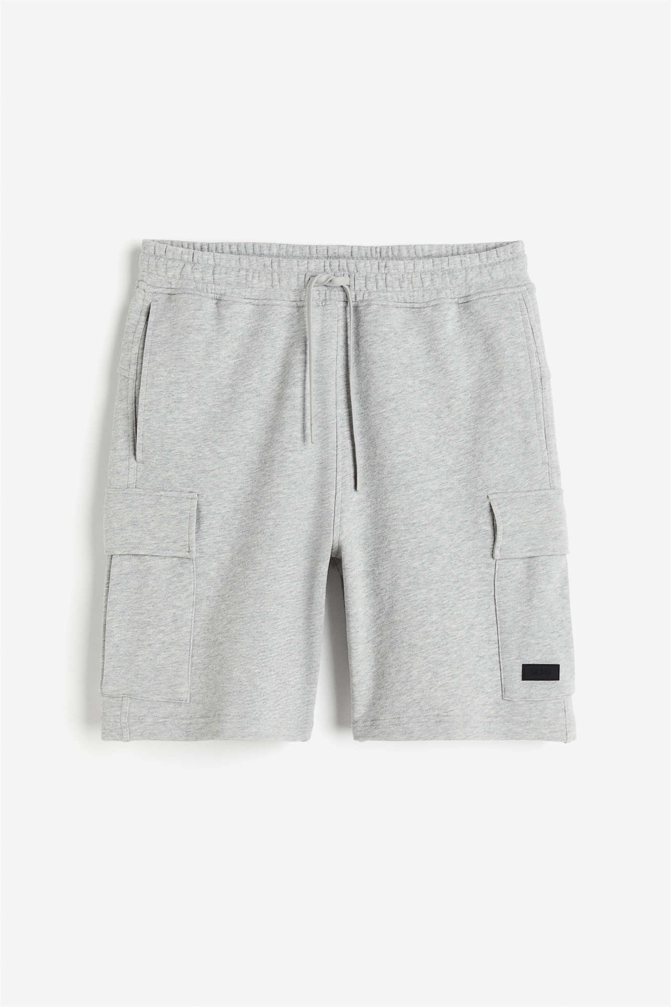 Длинные шорты-карго из легкого хлопкового свитшота с эластичной планкой и утягивающим шнурком на талии. Свободный крой, карманы на ногах с клапанами и неприметные боковые карманы, один из которых со скрытым карманом для мобильного телефона.