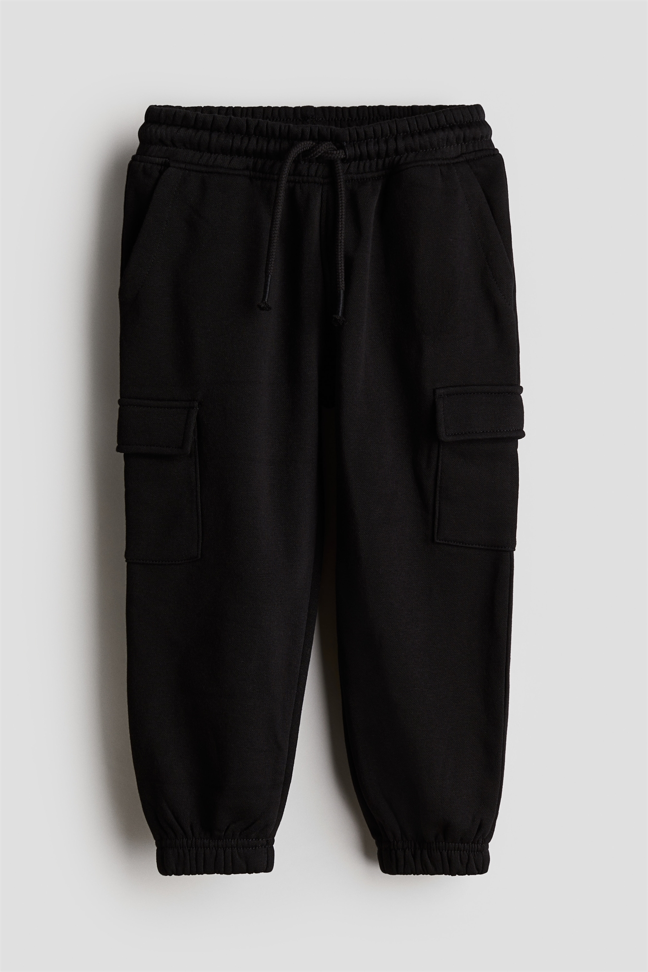 Джоггеры в стиле карго из толстоватой ткани с мягкой ворсистой внутренней стороной. Эластичная талия с утягивающим шнурком, диагональные боковые карманы, накладные карманы на ногах и эластичная резинка по краям.