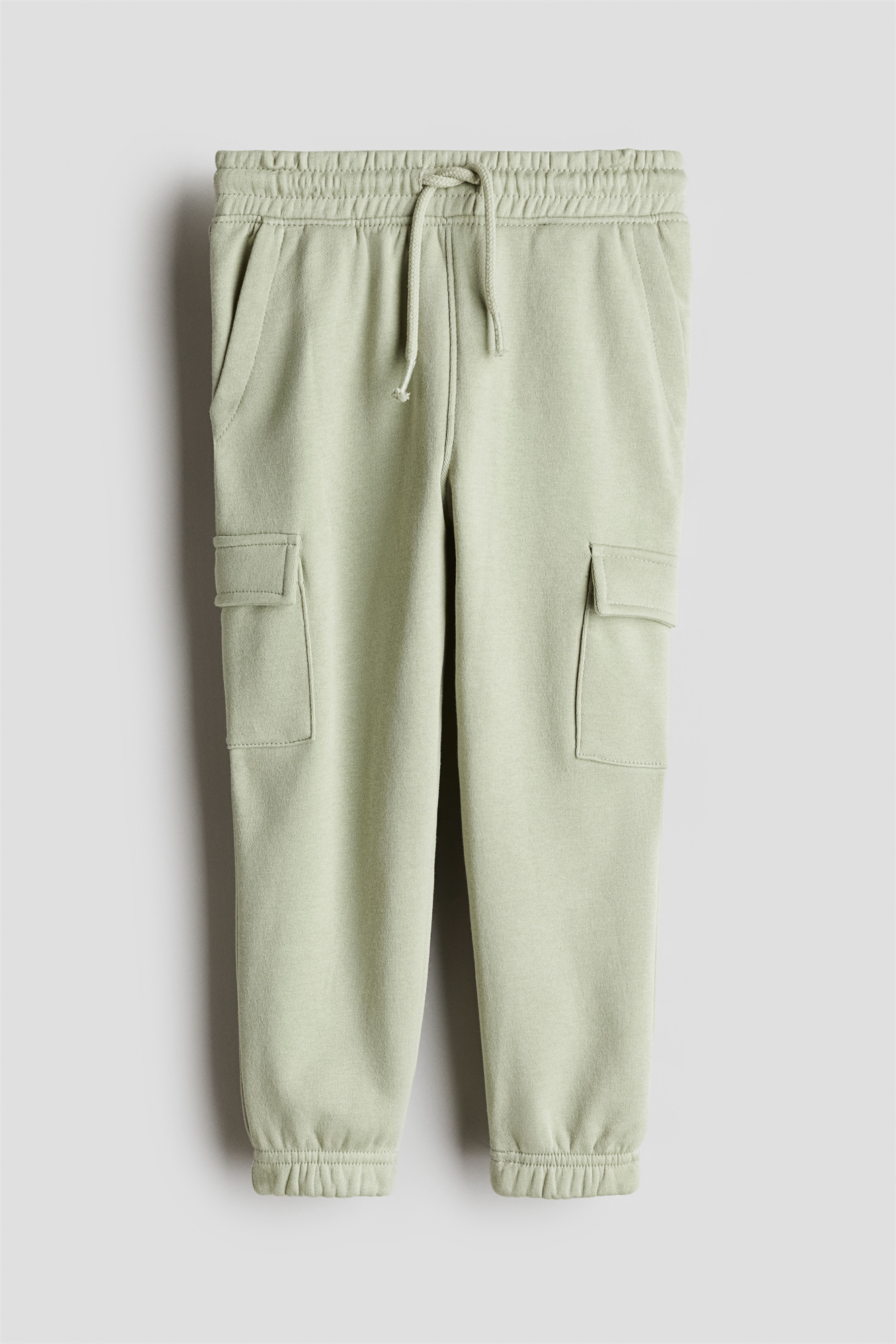 Джоггеры в стиле карго из толстоватой ткани с мягкой ворсистой внутренней стороной. Эластичная талия с утягивающим шнурком, диагональные боковые карманы, накладные карманы на ногах и эластичная резинка по краям.
