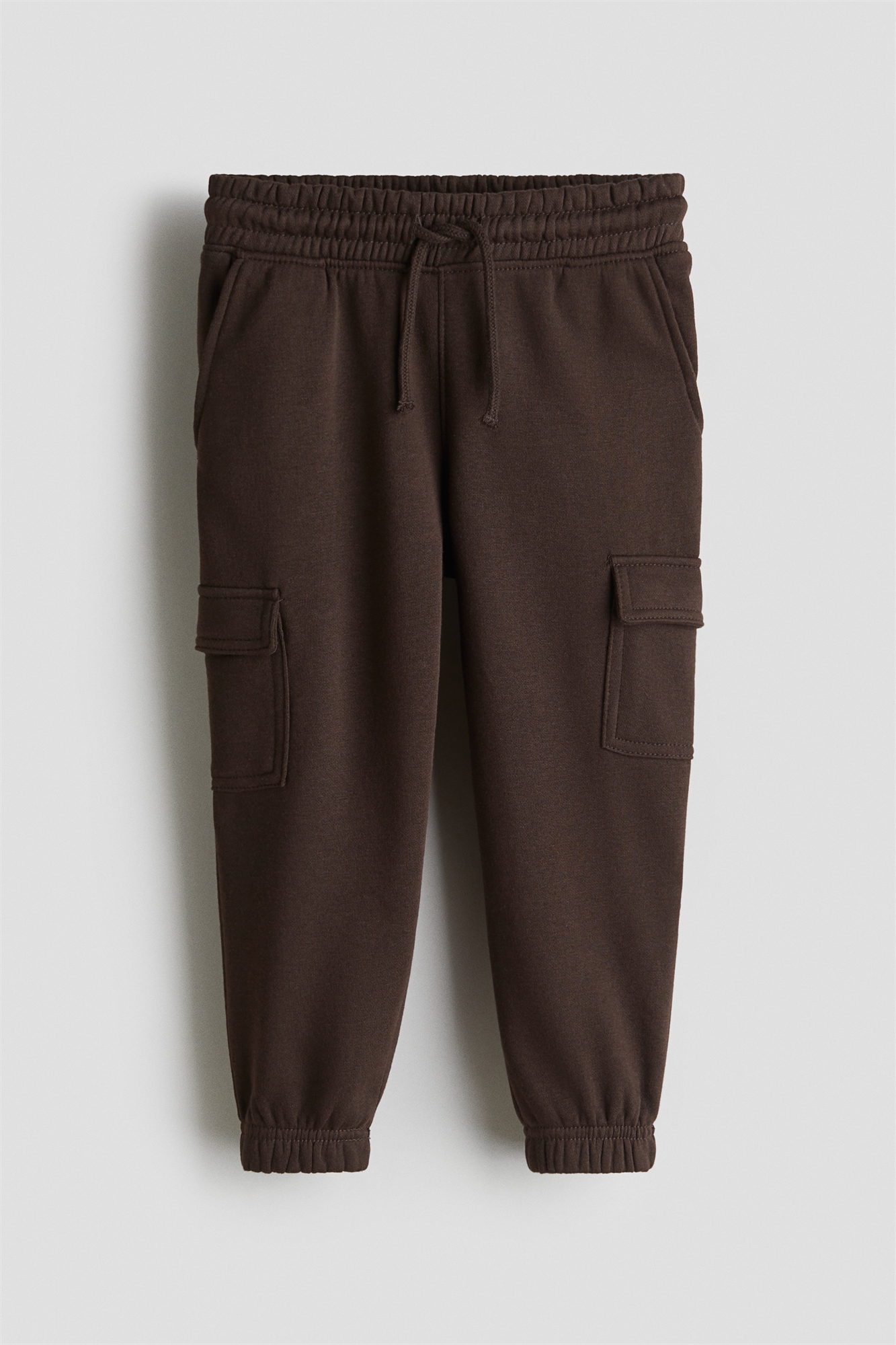Джоггеры в стиле карго из толстоватой ткани с мягкой ворсистой внутренней стороной. Эластичная талия с утягивающим шнурком, диагональные боковые карманы, накладные карманы на ногах и эластичная резинка по краям.