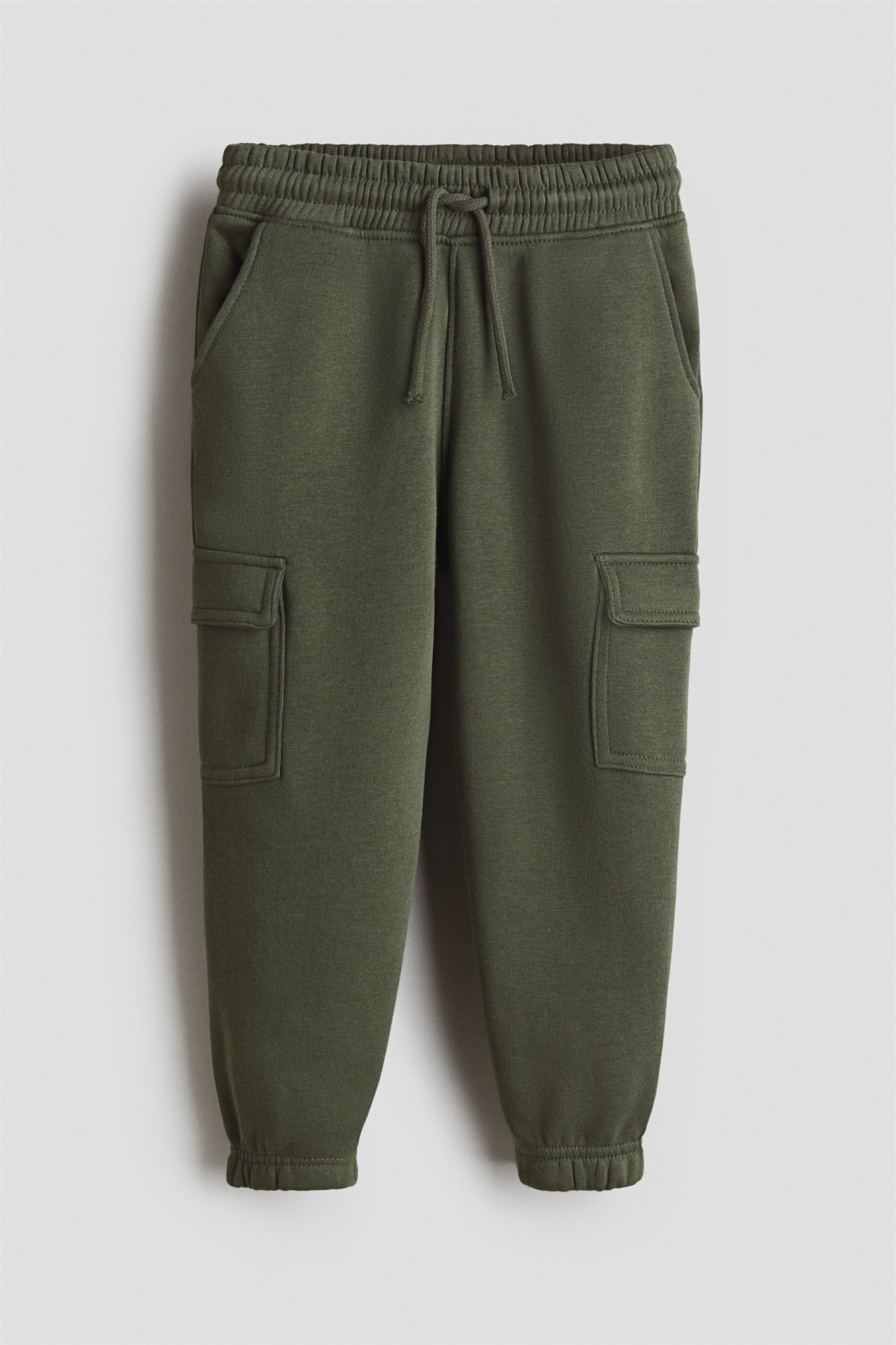 Джоггеры в стиле карго из толстоватой ткани с мягкой ворсистой внутренней стороной. Эластичная талия с утягивающим шнурком, диагональные боковые карманы, накладные карманы на ногах и эластичная резинка по краям.