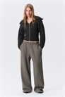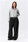 Пара удлиненных тренировочных брюк из мягкой смеси хлопка и переработанного полиэстера. Мягкий флис внутри, широкий эластичный пояс, прямые свободные ноги и два боковых кармана.