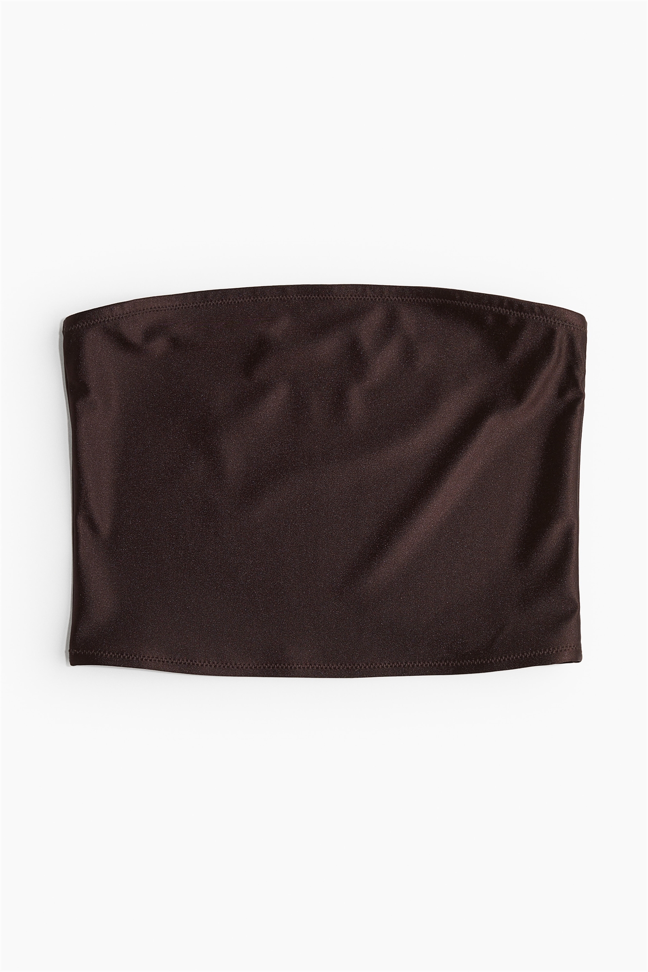 Короткий купальный топ-бандо со скрытой силиконовой отделкой в верхней части, которая удерживает его на месте. На подкладке.