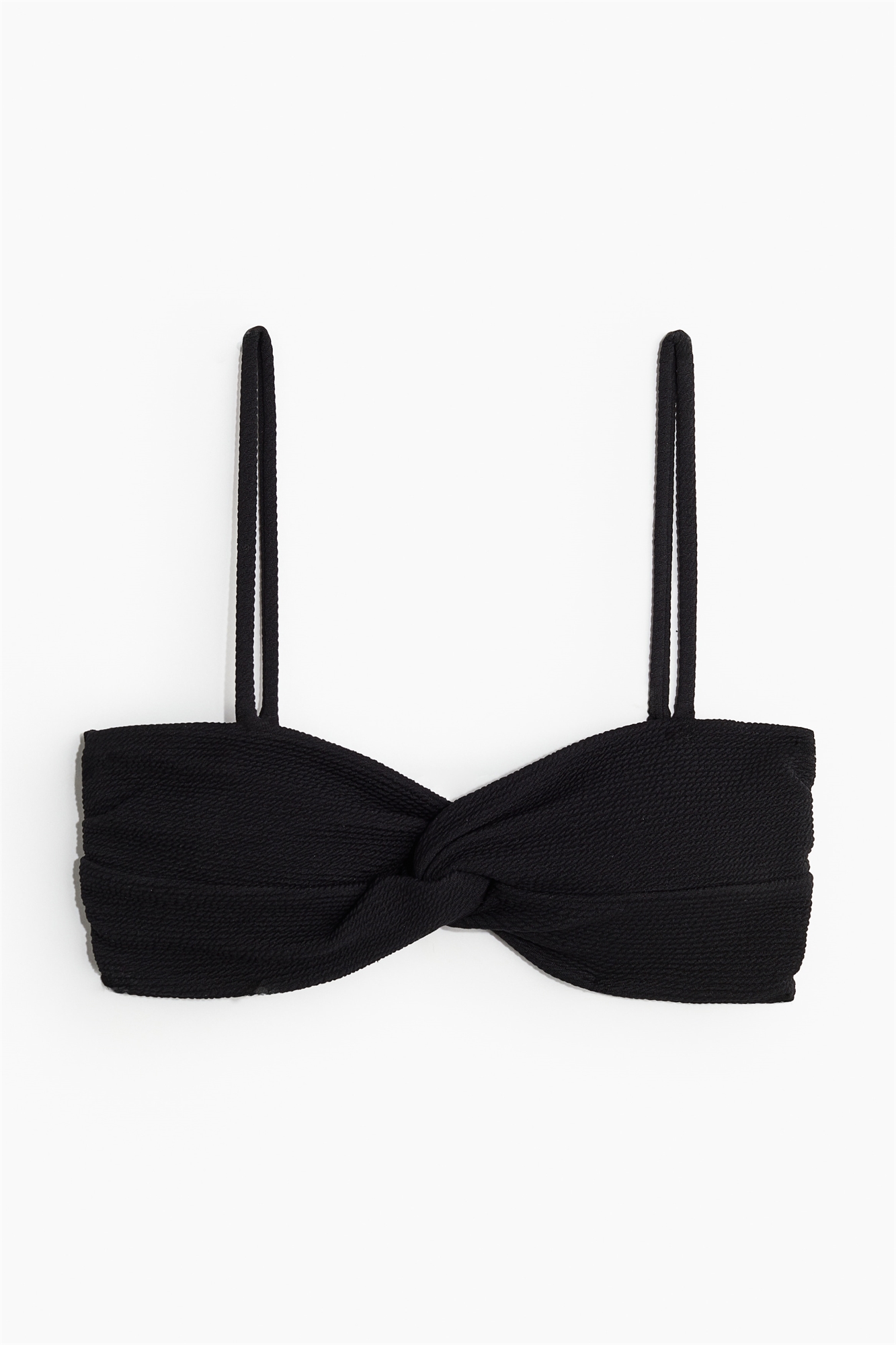 Бикини на подкладке, без проводов, из фактурной ткани. Узкие регулируемые бретели, перекрученная деталь спереди и чашечки со съемными вставками, придающими форму бюсту и обеспечивающими хорошую поддержку. Без застежек.