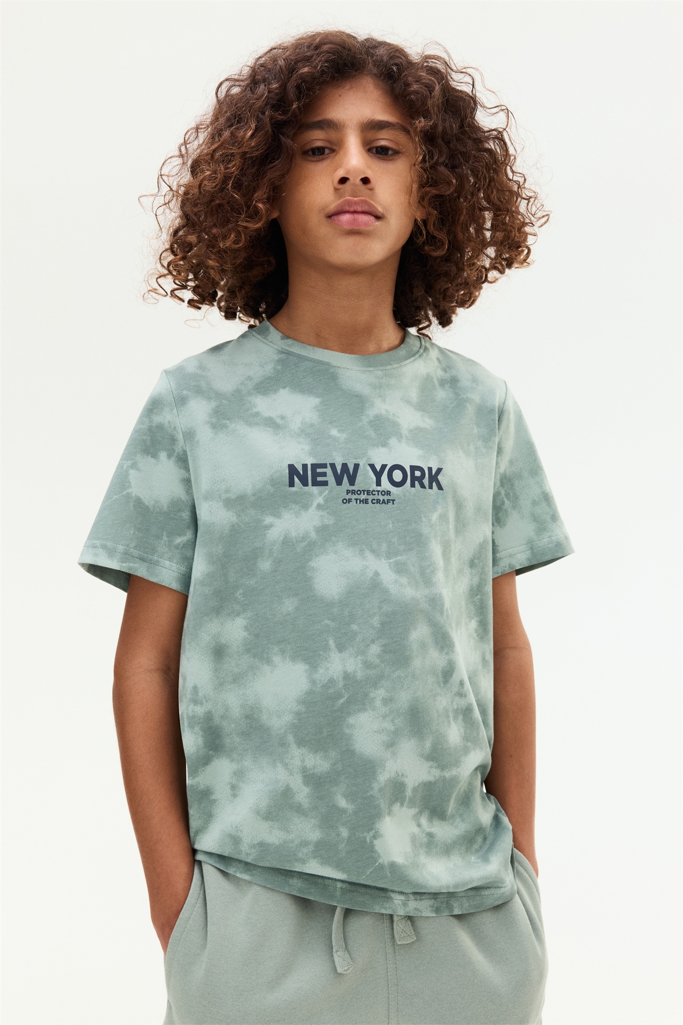 Классическая футболка из мягкого трикотажа с круглым вырезом с ребристой отделкой и прямым покроем.