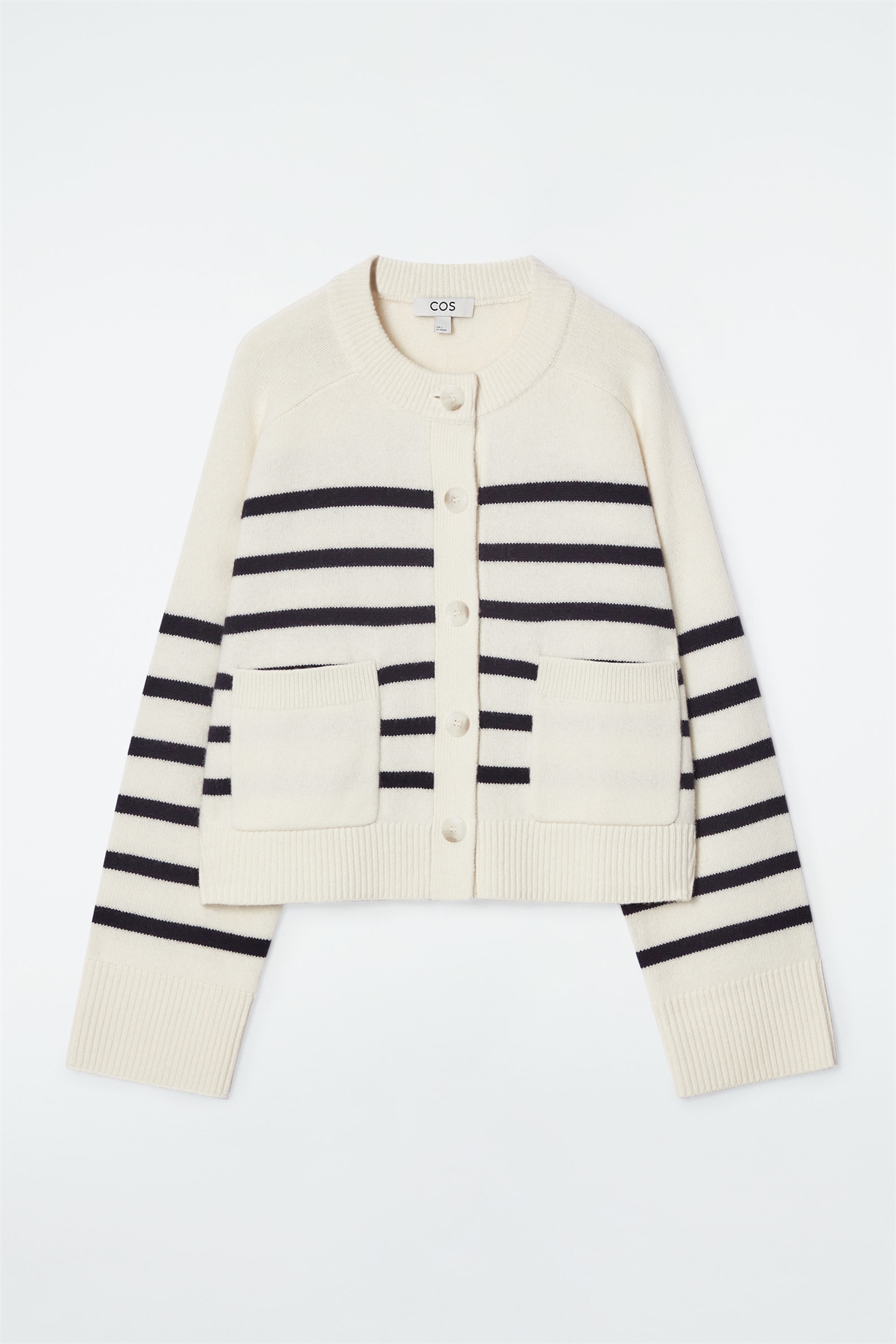 Этот классический кардиган станет основой ваших нарядов на переходный период. Вязаный из шерсти, сертифицированной RWS, он украшен контрастными полосками и имеет горловину, накладные карманы спереди и ряд пуговиц с эффектом рога. Регулярный крой Застежка на пуговицы Этот продукт сертифицирован Responsible Wool Standard (RWS) Control Union 893290 и содержит шерстяное волокно с ферм, сертифицированных на соответствие требованиям по благополучию животных и управлению земельными ресурсами Шелл: 100% шерсть RWS. Без учета отделки / Сухая чистка Длина по спинке для размера S составляет 51,5 см / Модель носит размер S