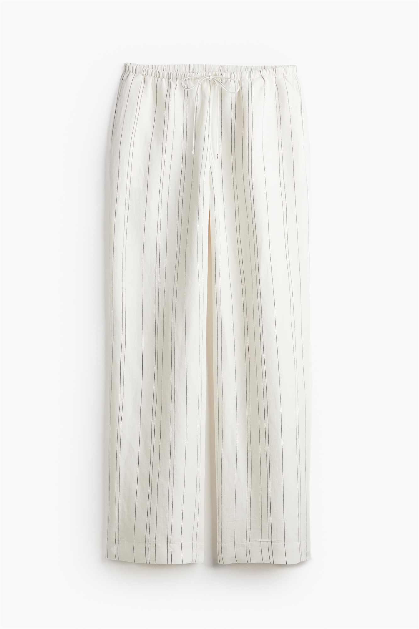 Свободные брюки с воздушным плетением из смеси льна. Регулярная талия с эластичной отделкой и узким шнурком, незаметные боковые карманы, накладные карманы сзади и прямые ноги.