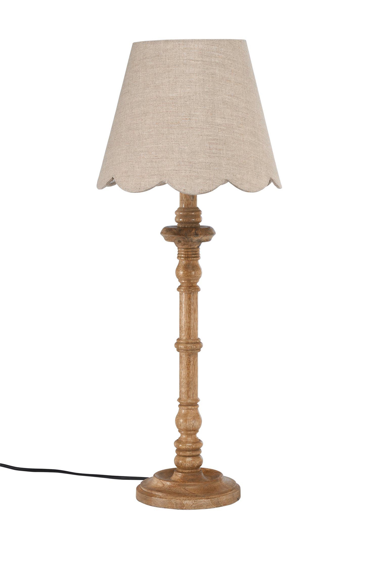 Декоративная настольная лампа, вдохновленная старинными подсвечниками. Основание лампы имеет отделку натурального цвета с естественными вариациями, которые делают каждую лампу уникальной. Абажур выполнен из льняной ткани с красивой структурой, имеет коническую форму и волнообразную форму в нижней части. Черный пластиковый кабель длиной 1,8 метра с выключателем, цоколь лампы E27.