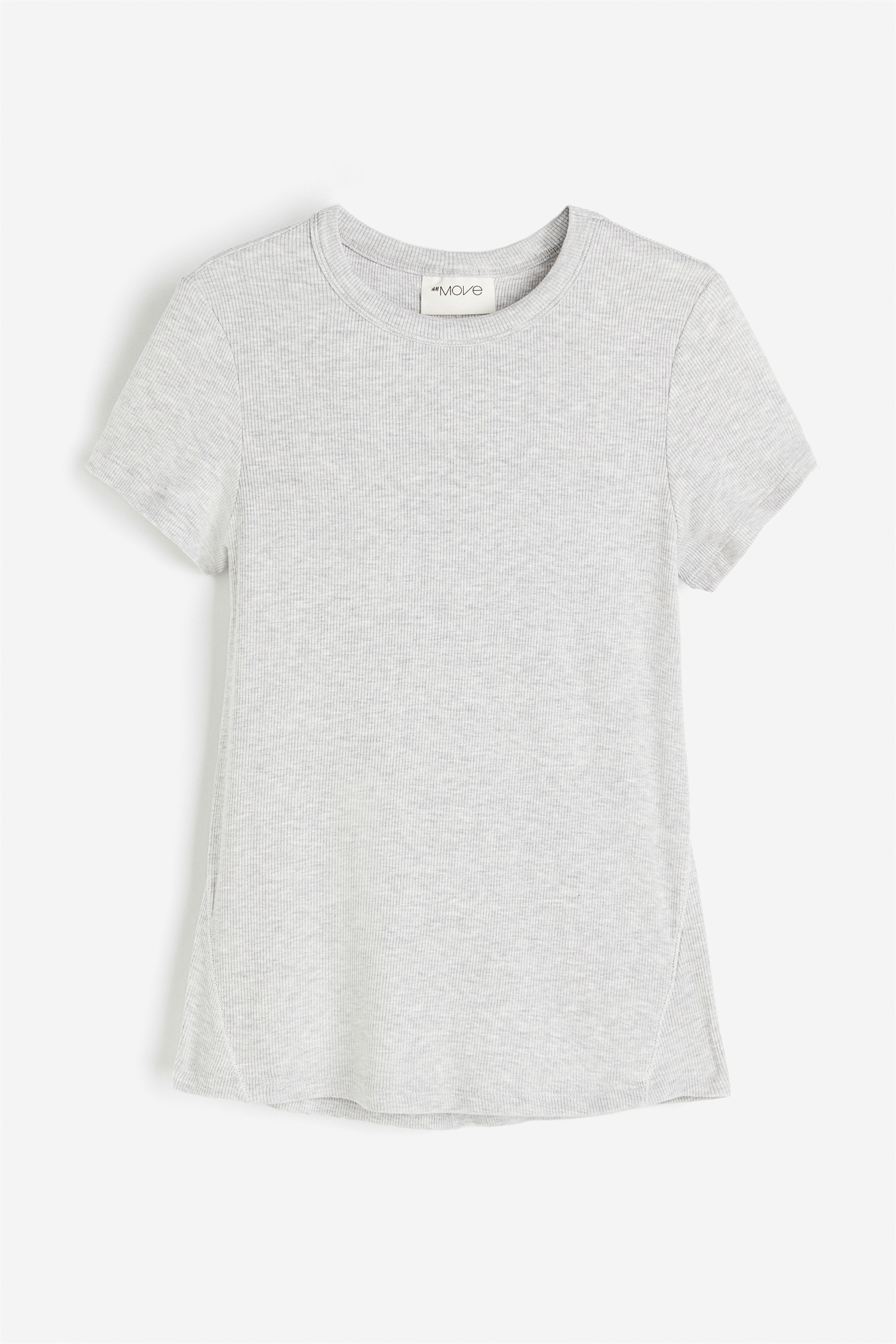 Спортивный топ из ребристой функциональной ткани DryMove™, которая помогает отводить влагу от кожи, обеспечивая комфортную сухость во время движения. Регулярный крой с круглым вырезом, короткими рукавами и мягко закругленным подолом.