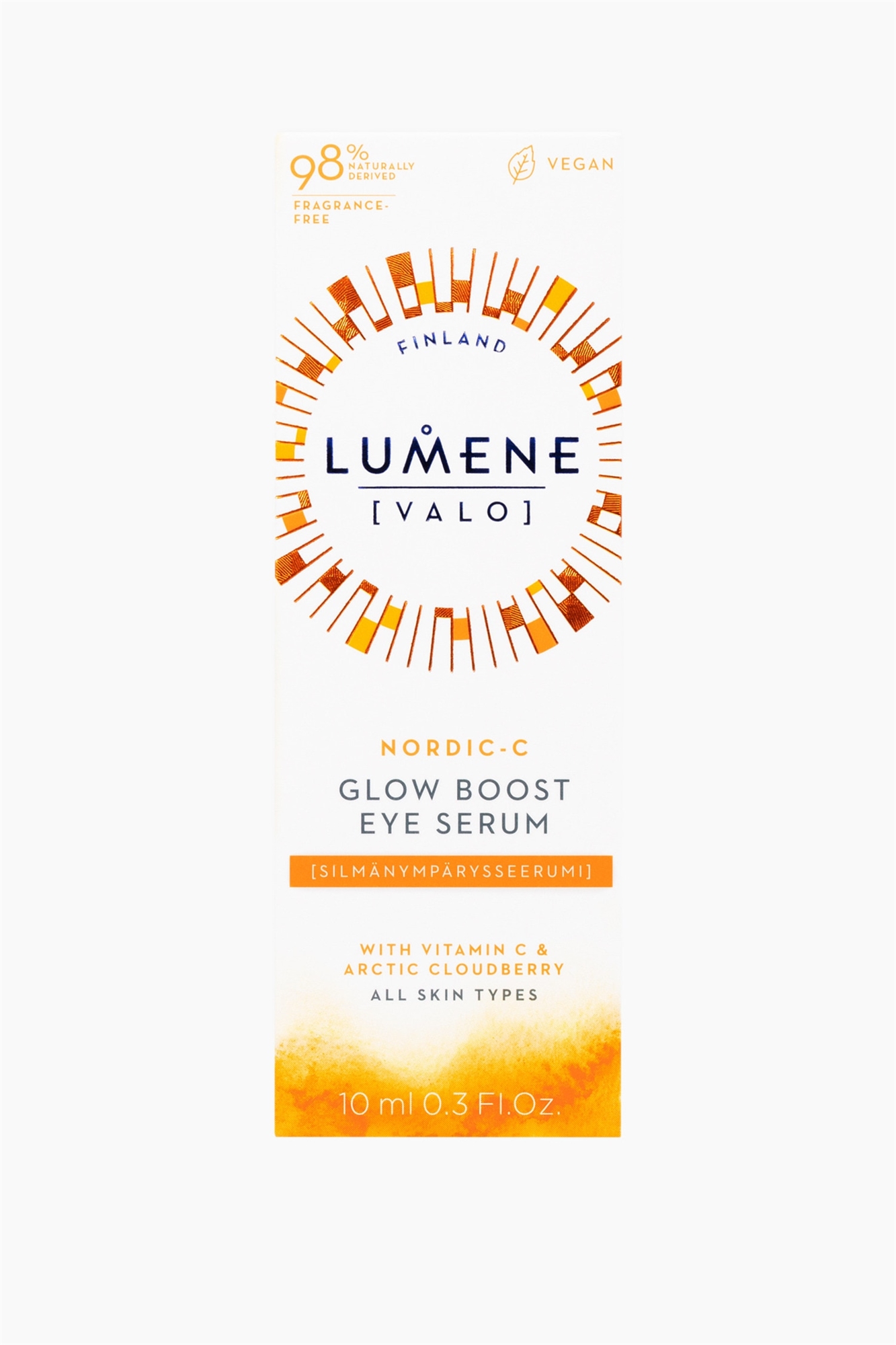 Мгновенное сияние для области вокруг глаз! Сыворотка для век LUMENE Nordic-C [Valo] Glow Boost прошла клинические испытания*, чтобы заметно уменьшить темные круги и увлажнить кожу вокруг глаз, делая взгляд более ровным и сияющим. Легкая формула сыворотки содержит богатую антиоксидантами дикую арктическую морошку и витамин С в сочетании с гиалуроновой кислотой и полиглутаминовой кислотой, обеспечивая максимальное сияние. Охлаждающий аппликатор помогает уменьшить отечность. Средство не содержит отдушек, является веганским и содержит высокий процент переработанных и созданных в дикой природе ингредиентов. Упаковка изготовлена из перерабатываемых и вторичных материалов *Клинические испытания, n=24-28