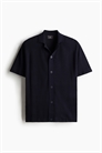 Рубашка с короткими рукавами из мягкого тонкого трикотажа с курортным воротником, пуговицами спереди и прямым подолом. Регулярный крой для комфортной носки и классического силуэта.