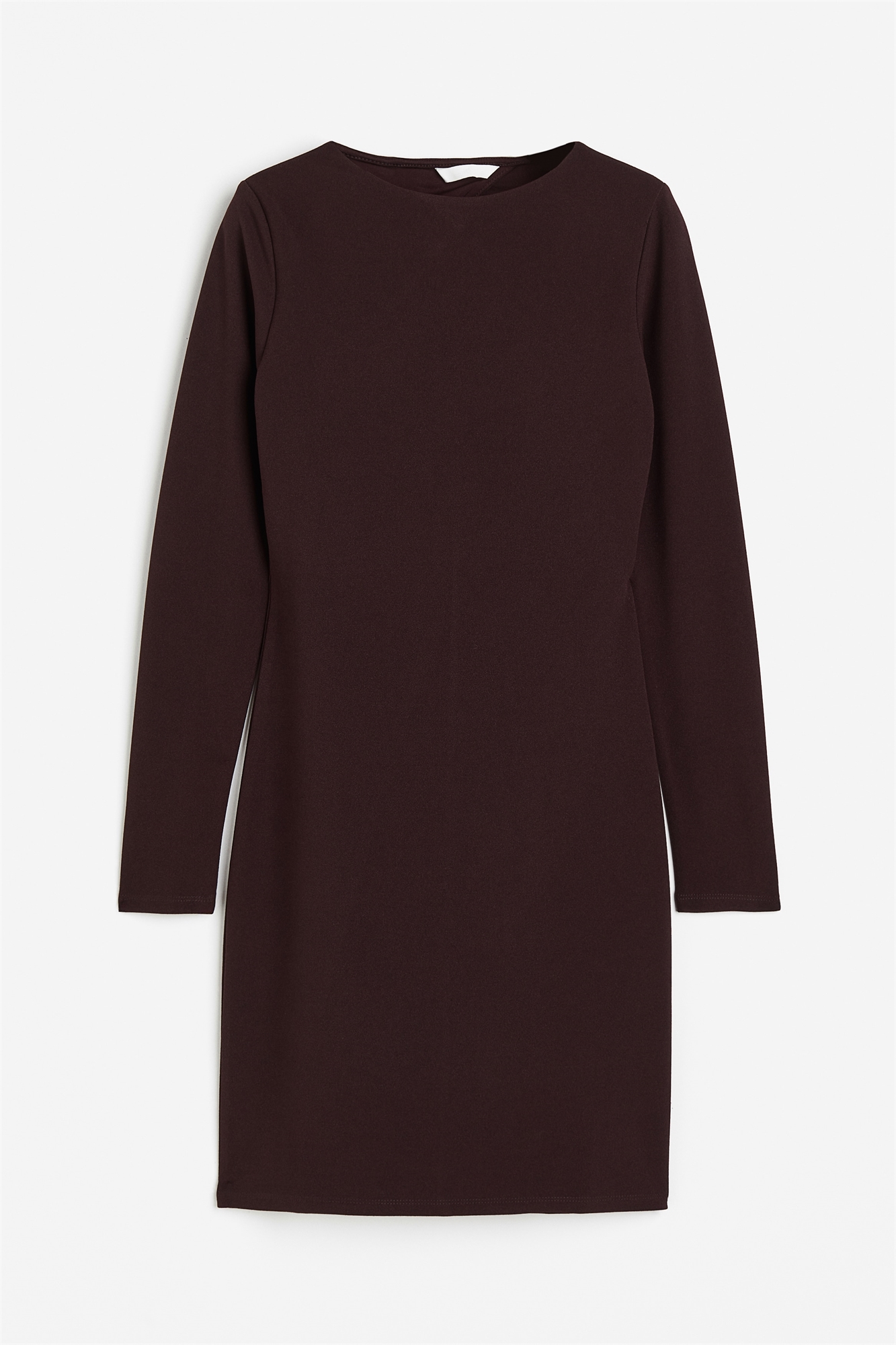 Короткое приталенное платье из мягкого джерси с круглым вырезом, длинными рукавами и треугольным вырезом сзади. Частично на подкладке.