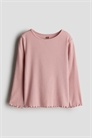 Рубашка с длинными рукавами из мягкого ребристого джерси с круглым вырезом и оверлочными кромками на манжетах рукавов и подоле.
