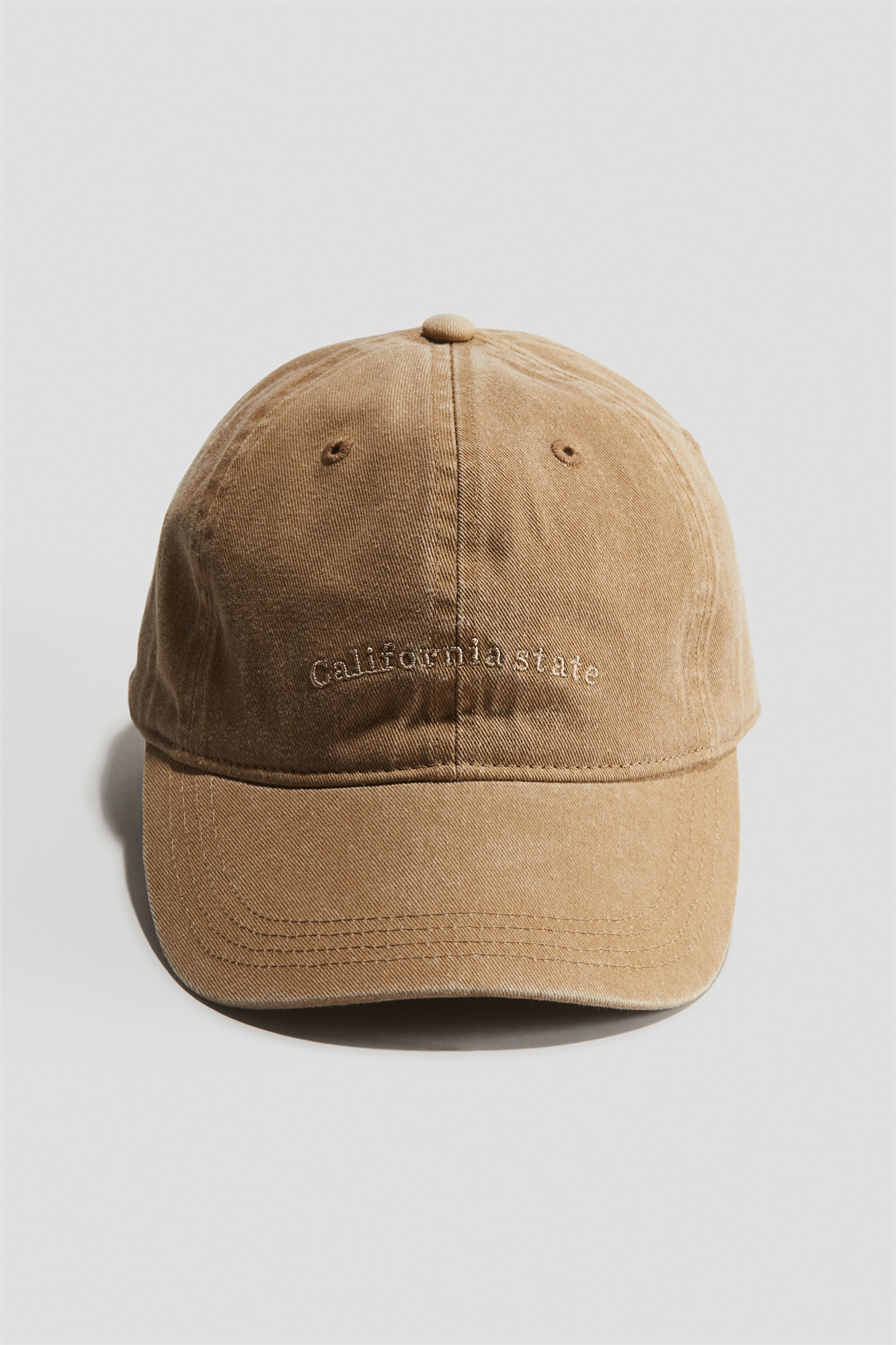 Бейсболка из хлопковой саржи с закрытой пуговицей и вышитыми люверсами на макушке. Регулируемый язычок с металлической пряжкой сзади.