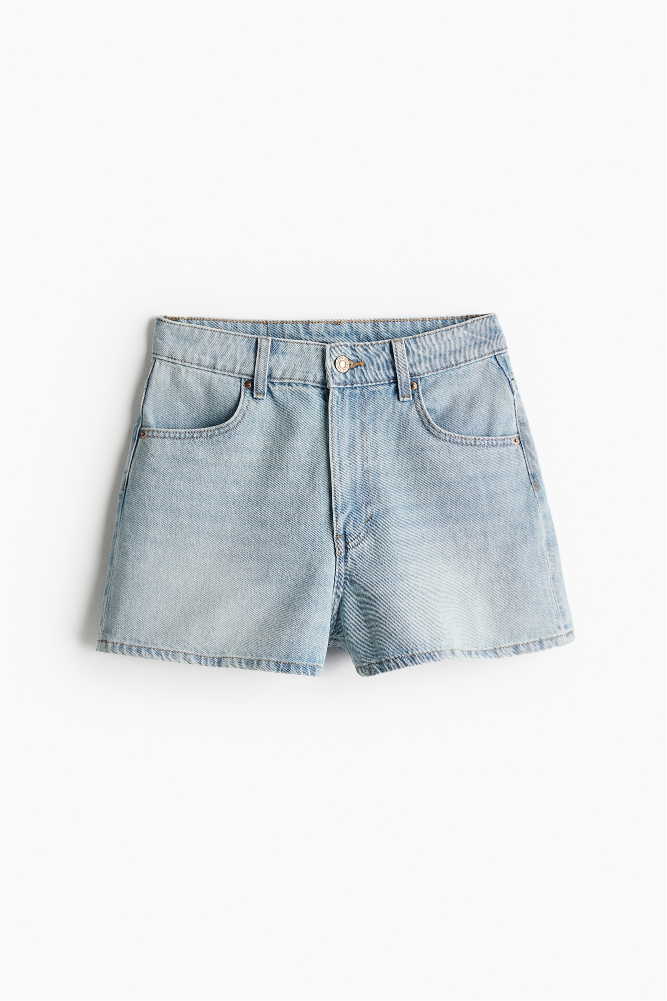 Шорты из жесткого хлопкового денима, который сначала кажется упругим, но затем смягчается и ослабевает при носке. Высокая талия, застежка на молнию и пуговицу, передние и задние карманы.