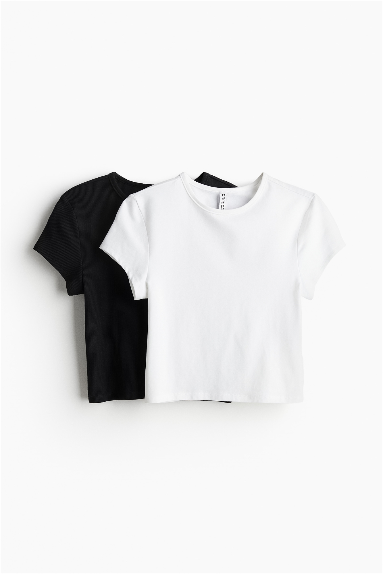 Короткие приталенные футболки из мягкого хлопкового джерси с узкой окантовкой по вырезу горловины.